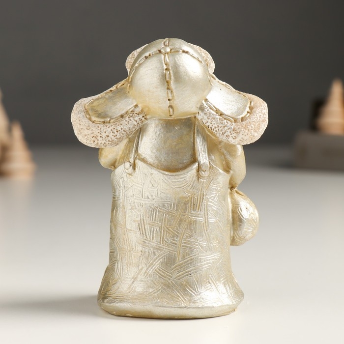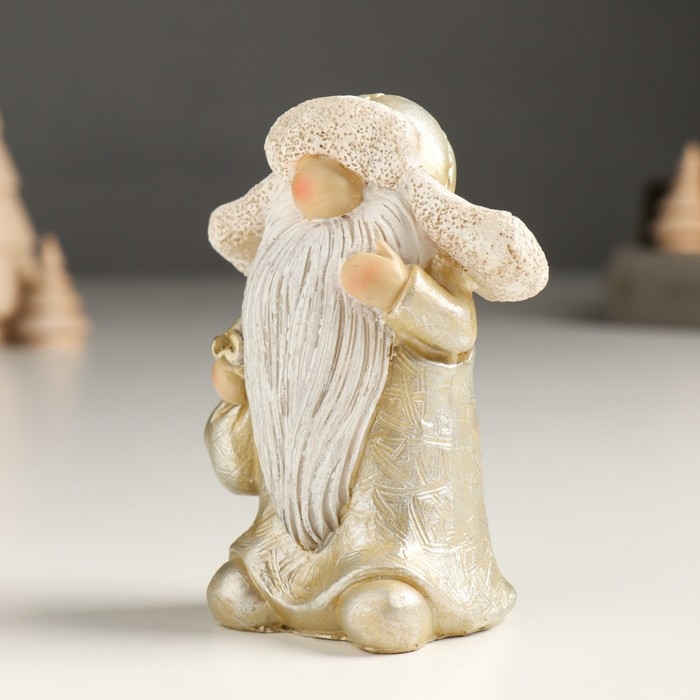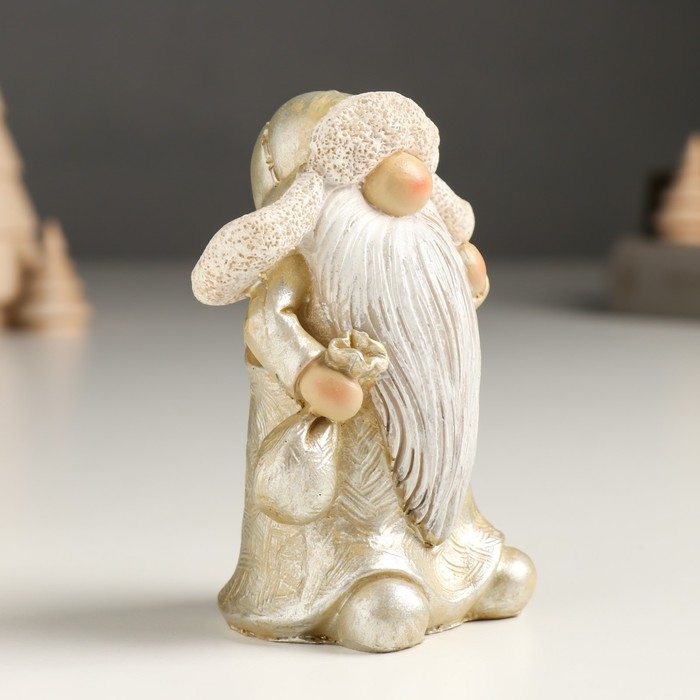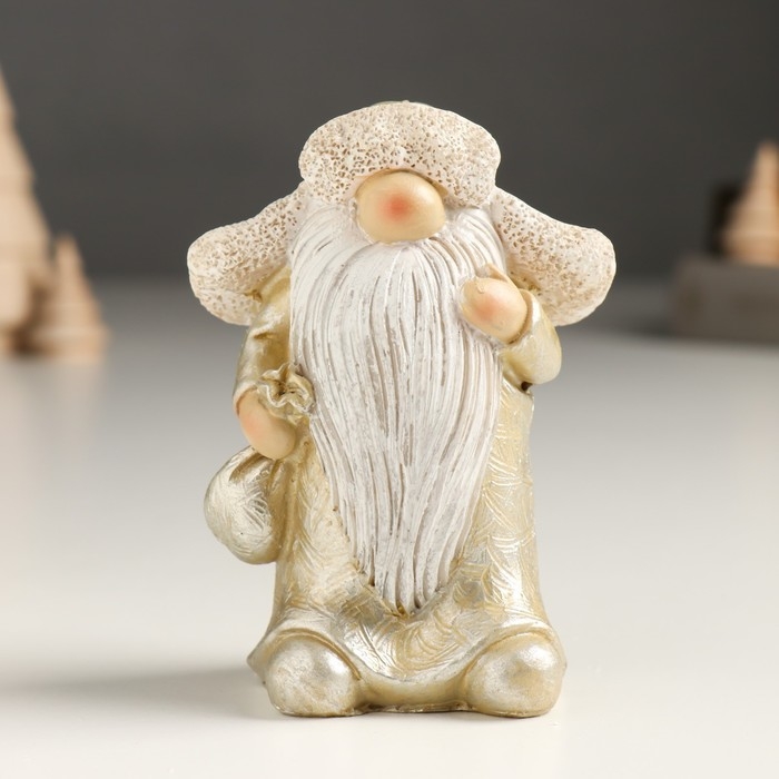 Сувенир полистоун "Дедушка Мороз в золотом наряде и шапке-ушанке с мешком" 6,5х5,5х9,5 см