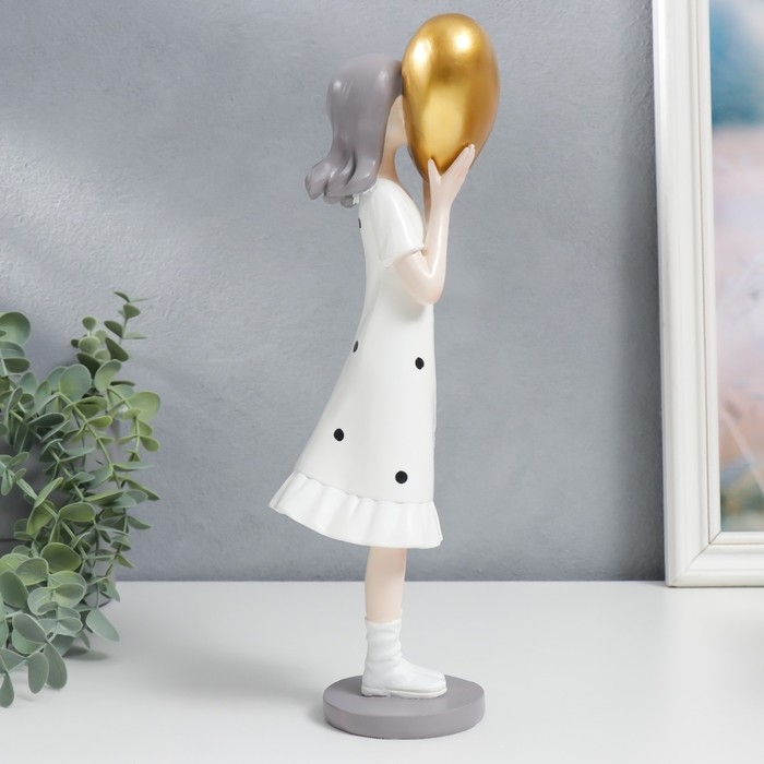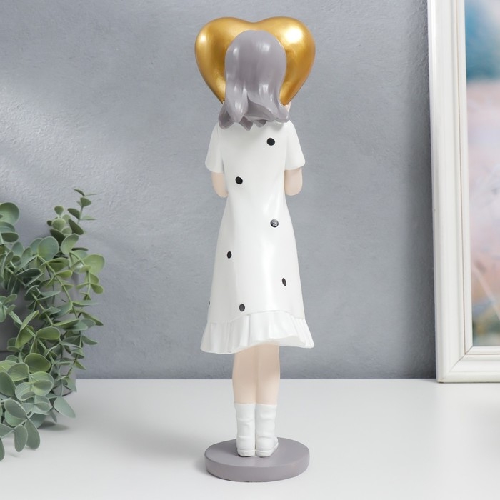 Сувенир полистоун "Девочка в белом платье в горох, с сердцем у лица" 30х10х8 см