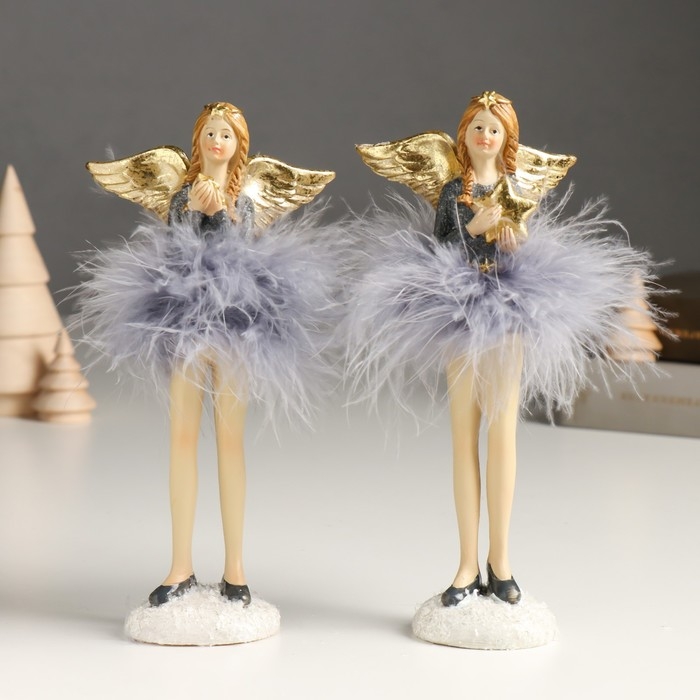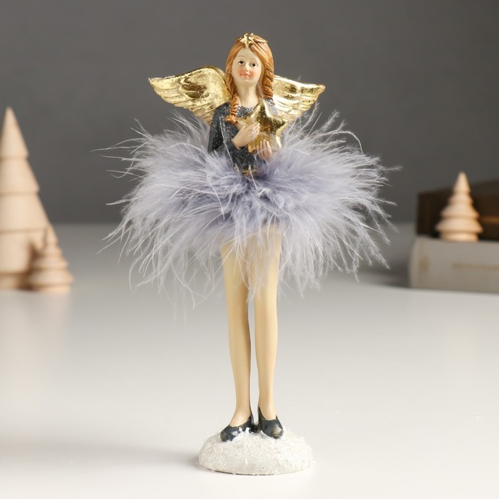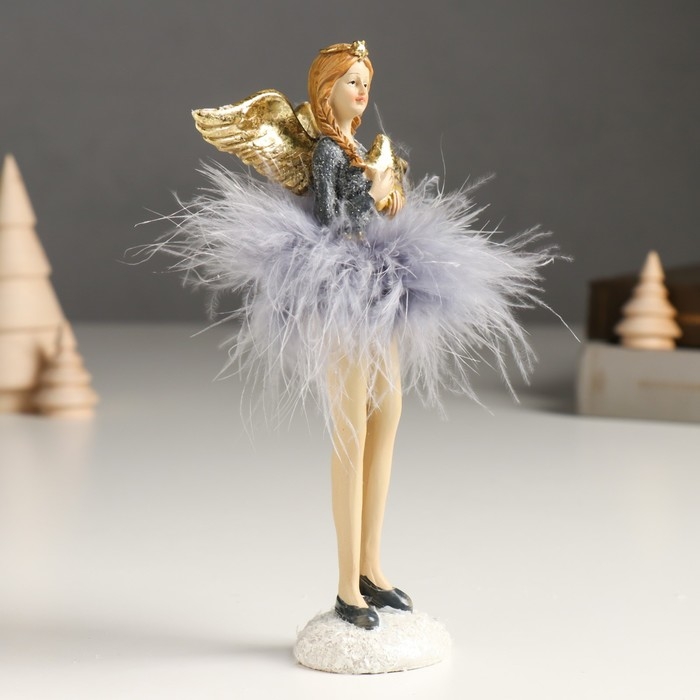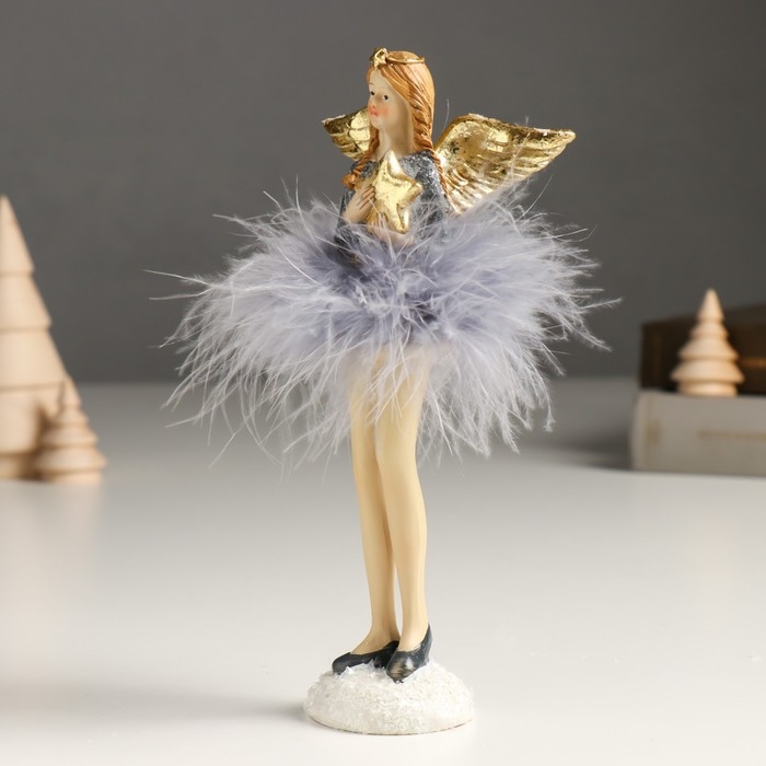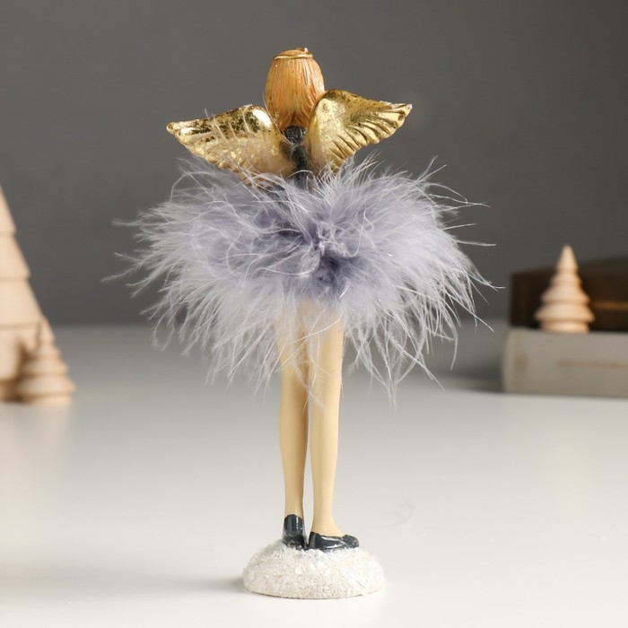 Сувенир полистоун "Девушка-ангел в сером платье и пуховой пачке" золото МИКС 6х8х18 см