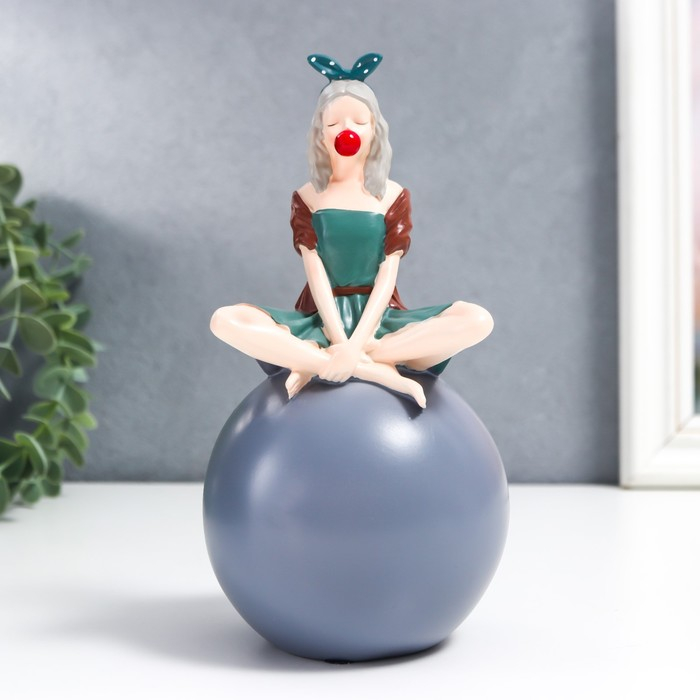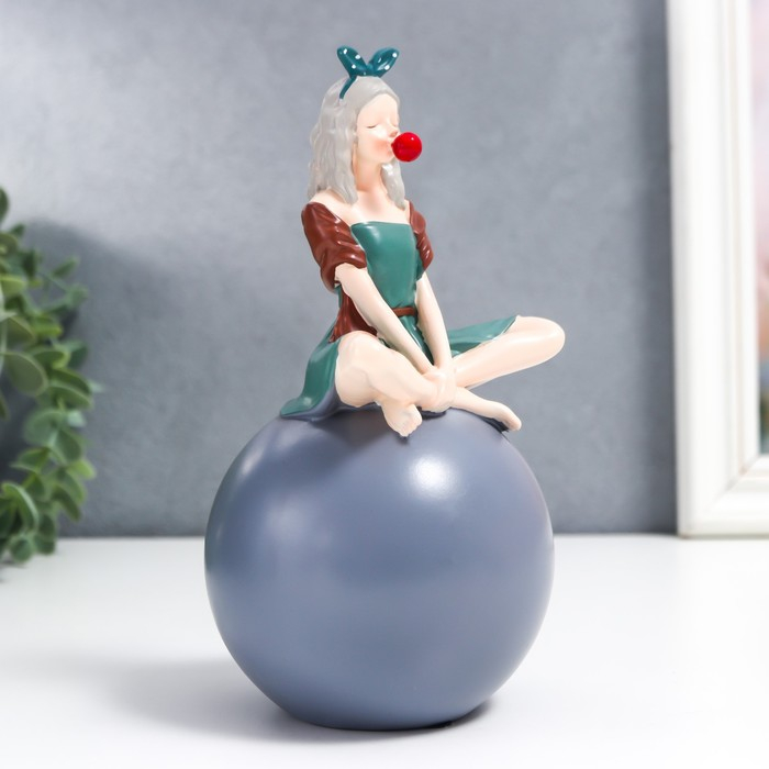 Сувенир полистоун "Девушка в зелёном платье на шаре" 18,5х10х10 см