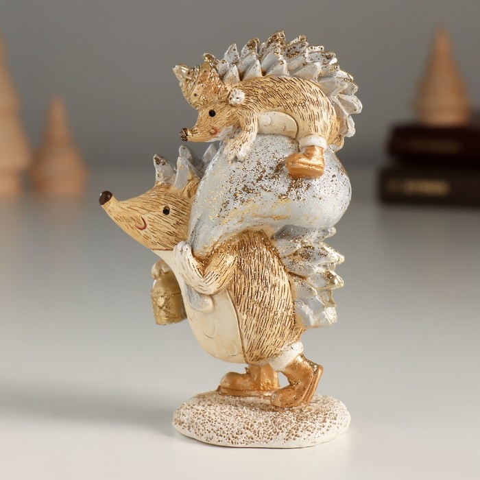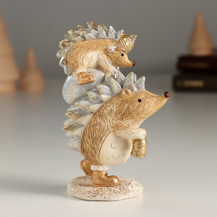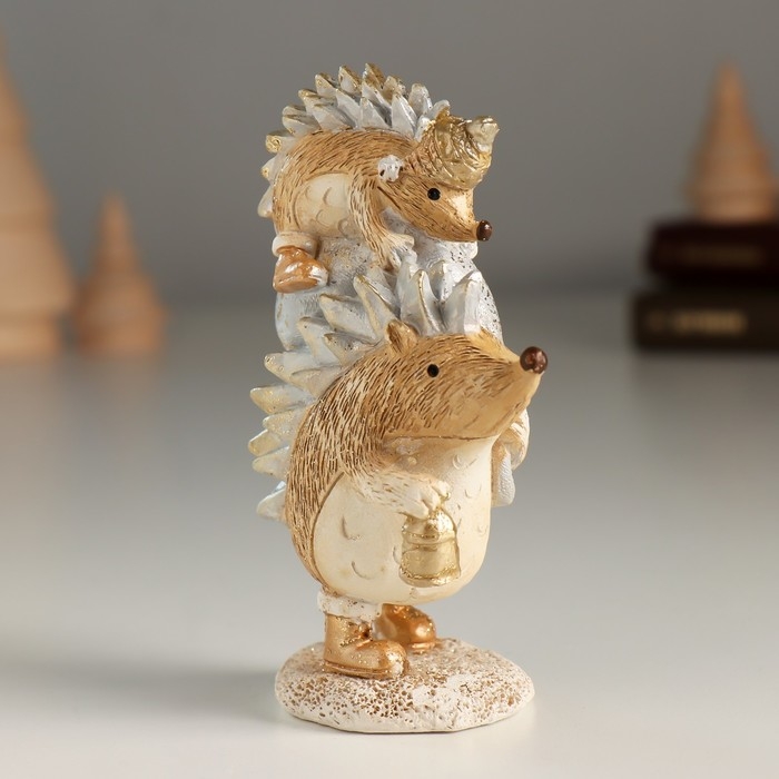 Сувенир полистоун "Ёжики с золотым мешком" 7х4,5х11 см