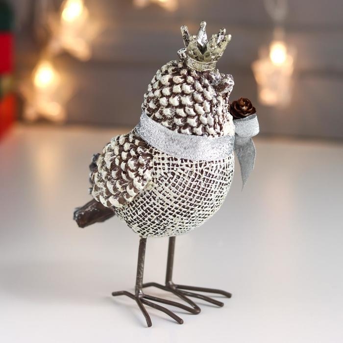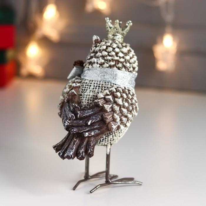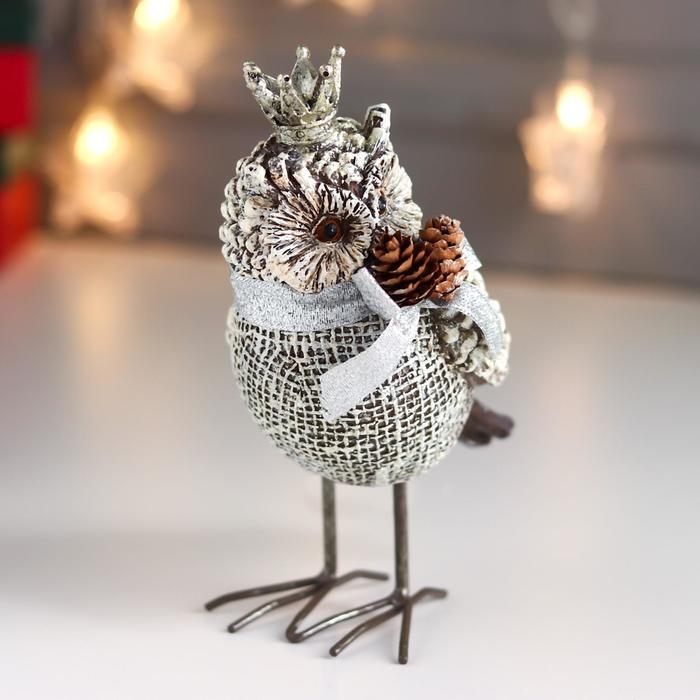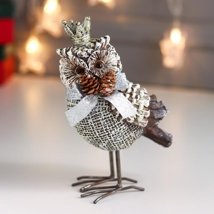 Сувенир полистоун "Филин в короне, с бантом и шишками" 15,5х8х10,5 см