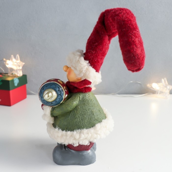 Сувенир полистоун "Гномик в красном колпаке с ёлочной игрушкой" 10,5х12,5х27,5 см