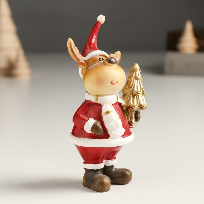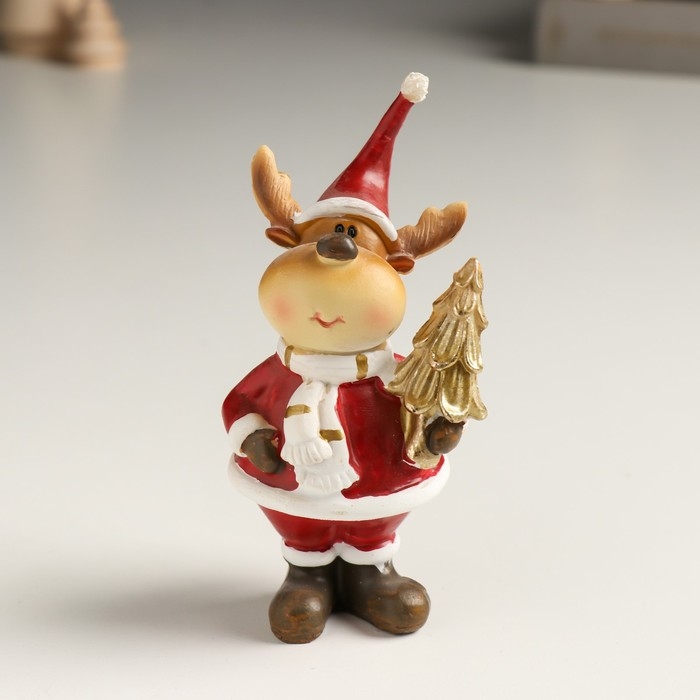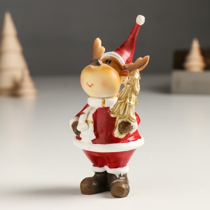 Сувенир полистоун "Лосик в красном кафтане и колпаке с ёлкой/подарком" МИКС 4х5х10 см