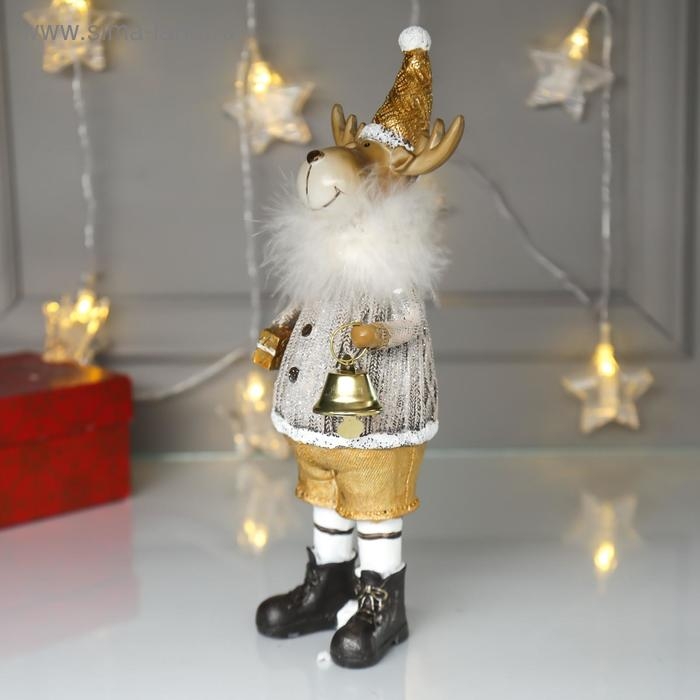 Сувенир полистоун "Лосик в серебристом свитере с колокольчиком" 27х6,5х9 см