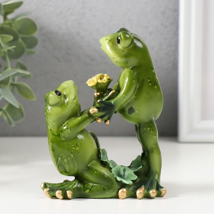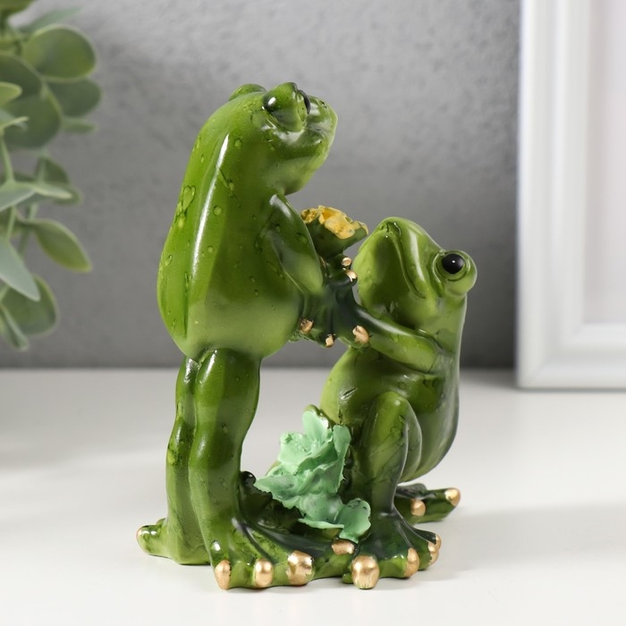 Сувенир полистоун "Лягушки с букетом" 5х12х12 см