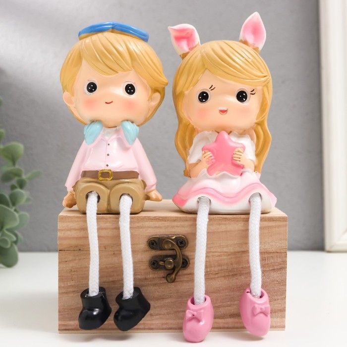 Сувенир полистоун "Мальчки в кепке и девочка с бантом" дл. ножки, набор 2 шт 6х7х17 см