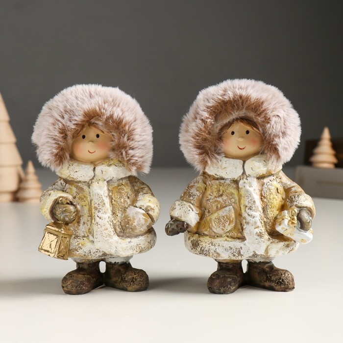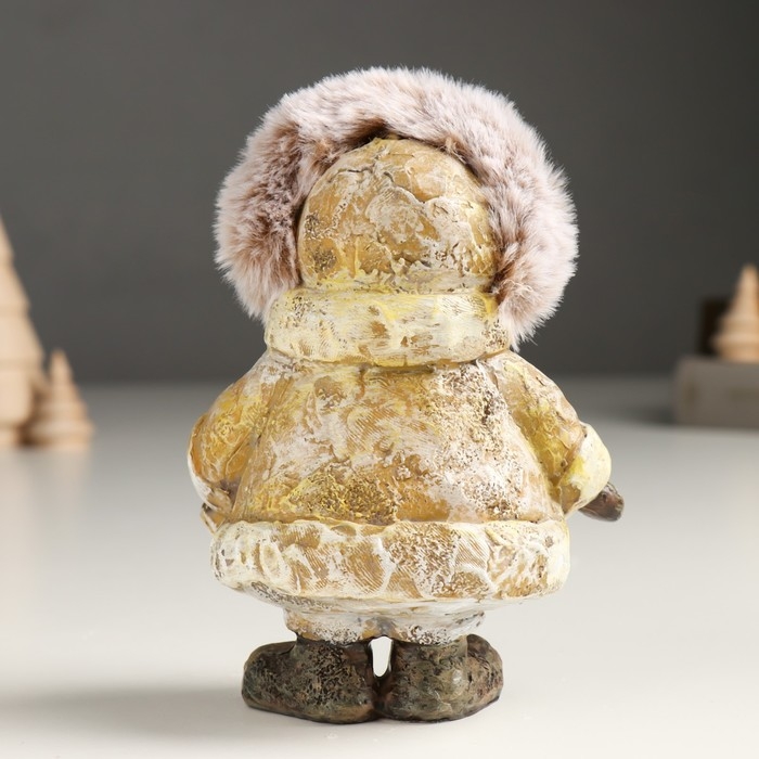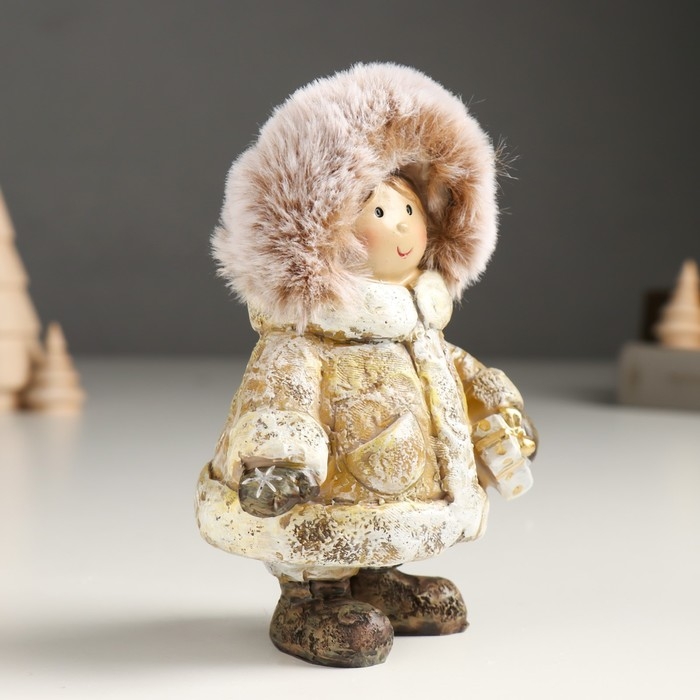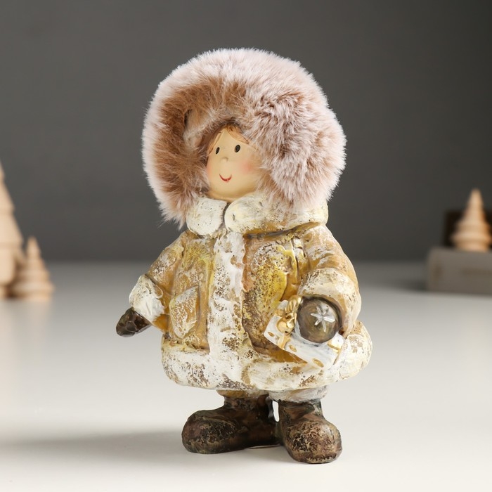 Сувенир полистоун "Малыш в шубе с меховым капюшоном, с подарком/фонарем" МИКС 6,5х9,5х13 см 949889