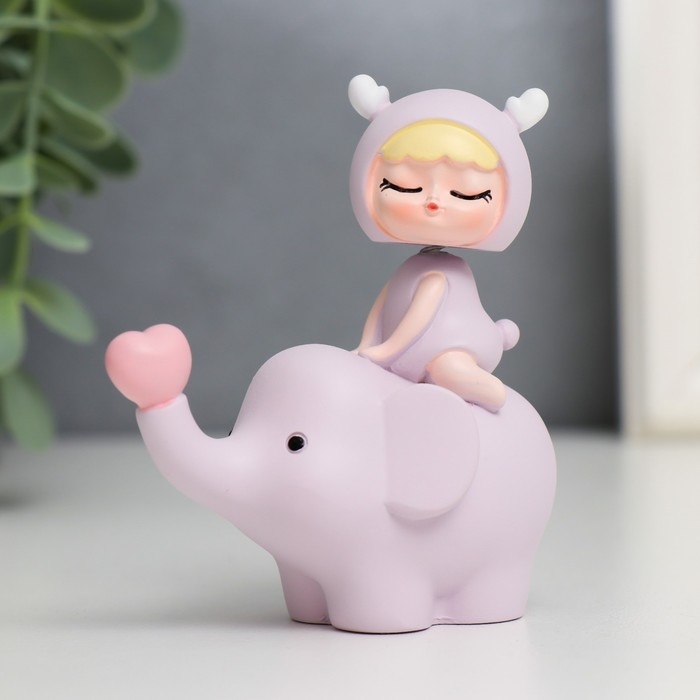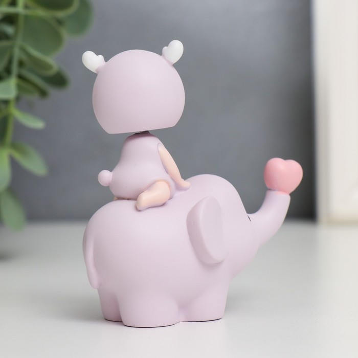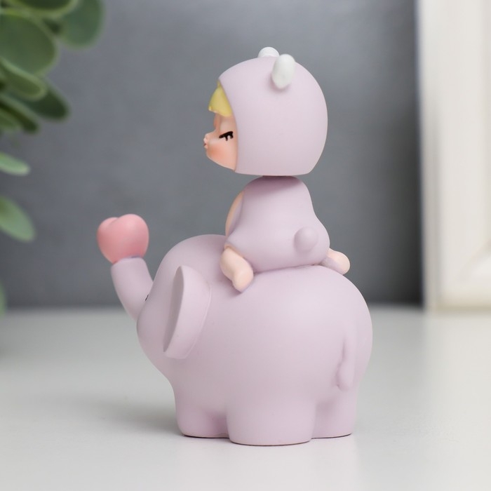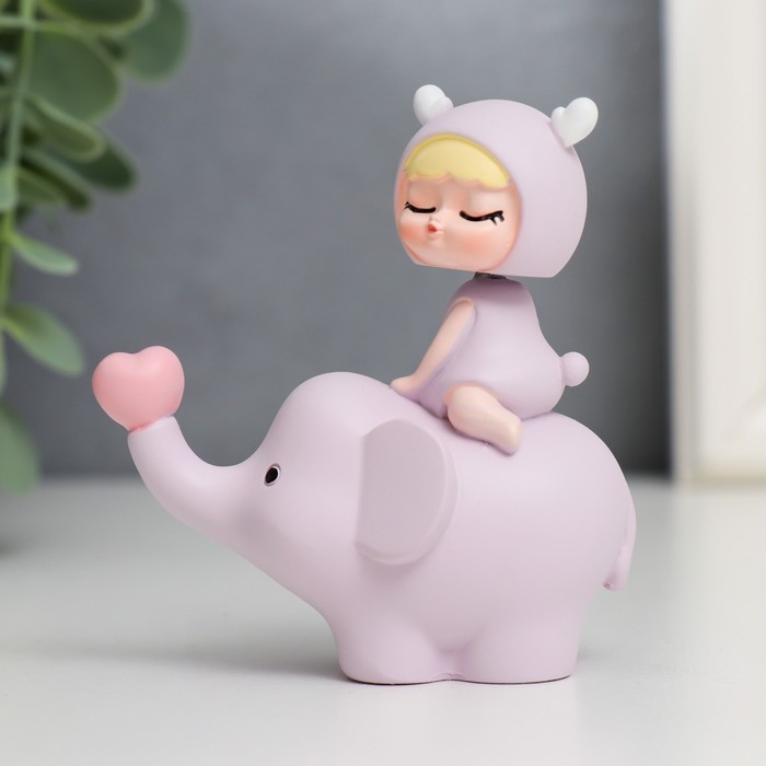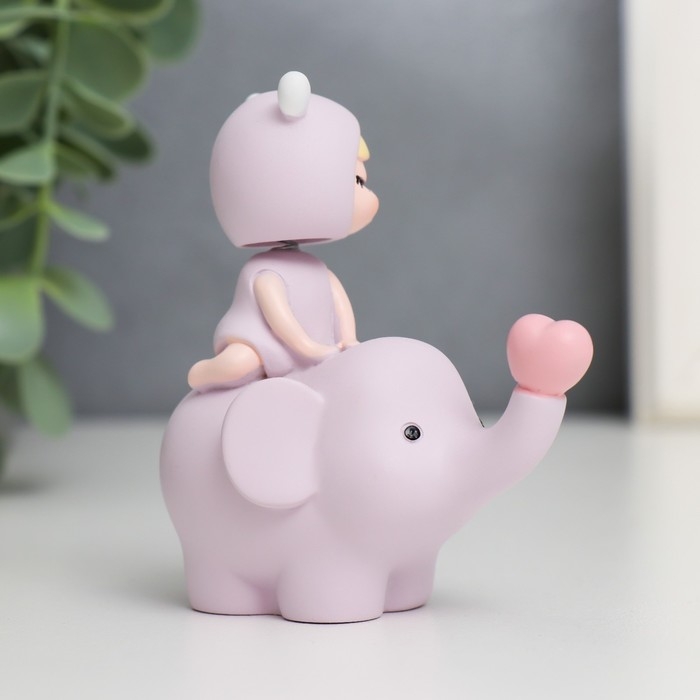 Сувенир полистоун "Малышка на слонёнке, с сердцем" пружинка 7,5х4х7 см