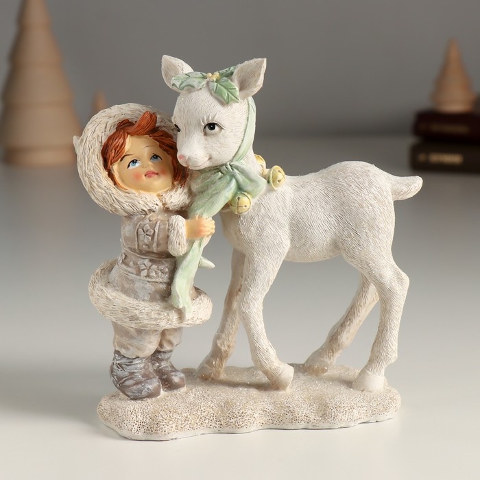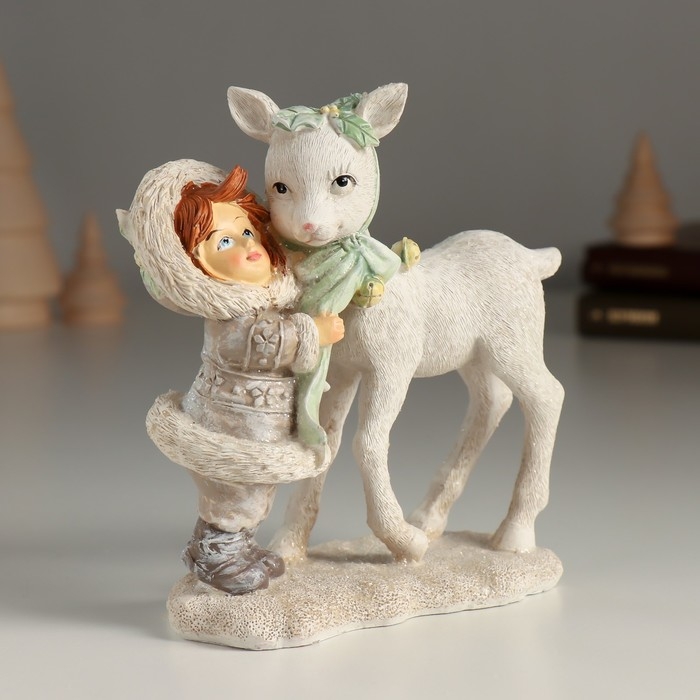 Сувенир полистоун "Малышка с белым оленёнком" 12х6х13 см