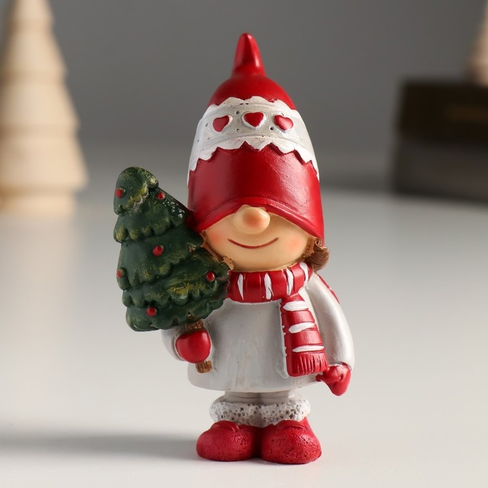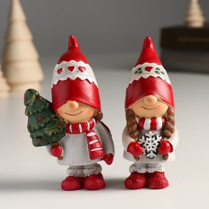 Сувенир полистоун "Малышка со снежинкой/Малыш с ёлочкой" МИКС 5,5х5,5х10 см