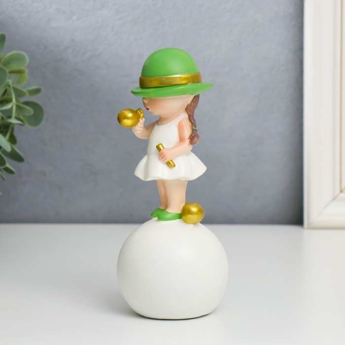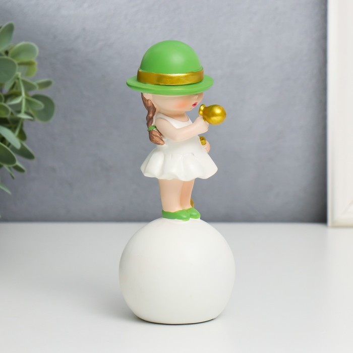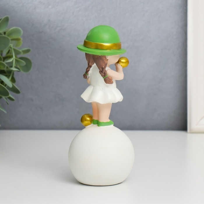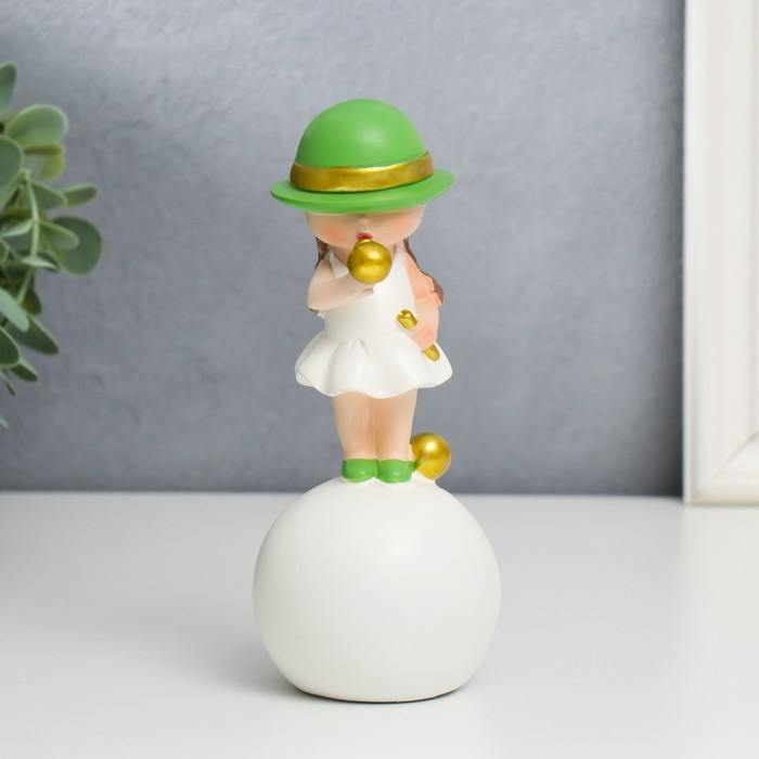 Сувенир полистоун "Малышка в зелёной шляпке, с золотым пузырём на шаре" 16х7х7 см