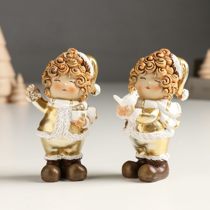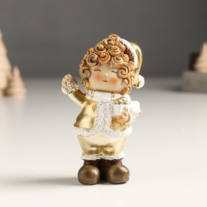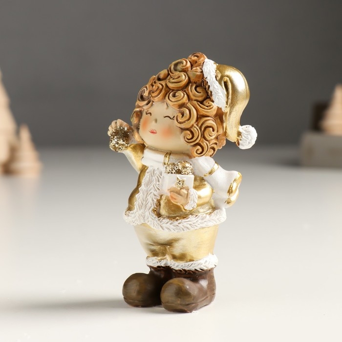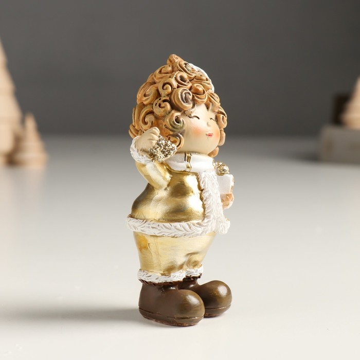 Сувенир полистоун "Малышка в золотом кафтане и колпаке, с птичкой/подарком" МИКС 4х5,5х10 см 94988