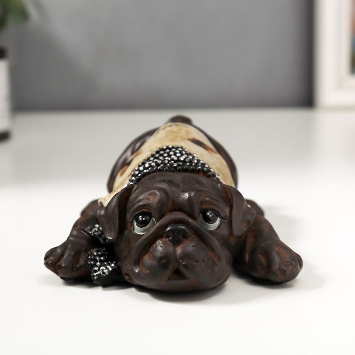 Сувенир полистоун "Мопс в футболке с косынкой" под бронзу 5,5х18х11 см