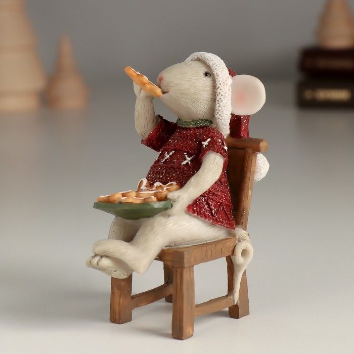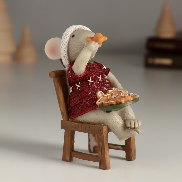Сувенир полистоун "Мышка лакомится имбирными печеньками" 7,5х4,5х9,5 см