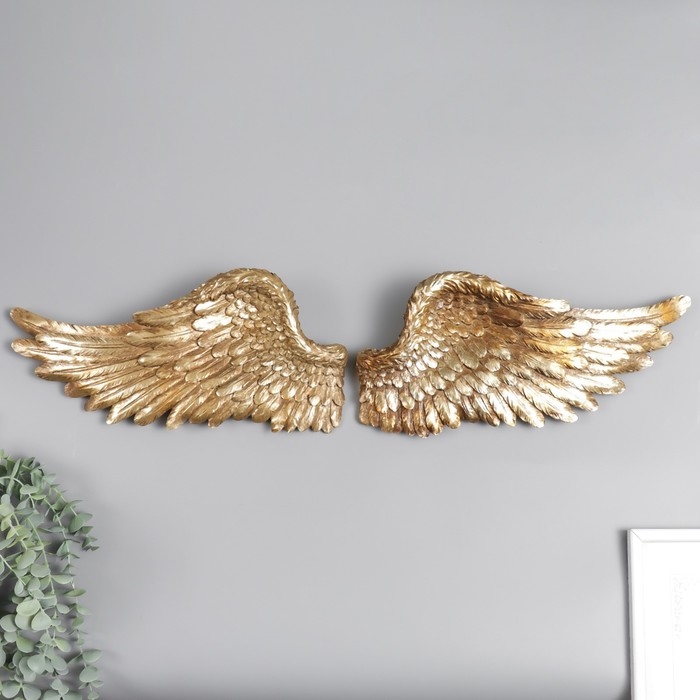Сувенир полистоун настенный декор "Золотые крылья" набор 2 шт размер крыла 18х41х6 см