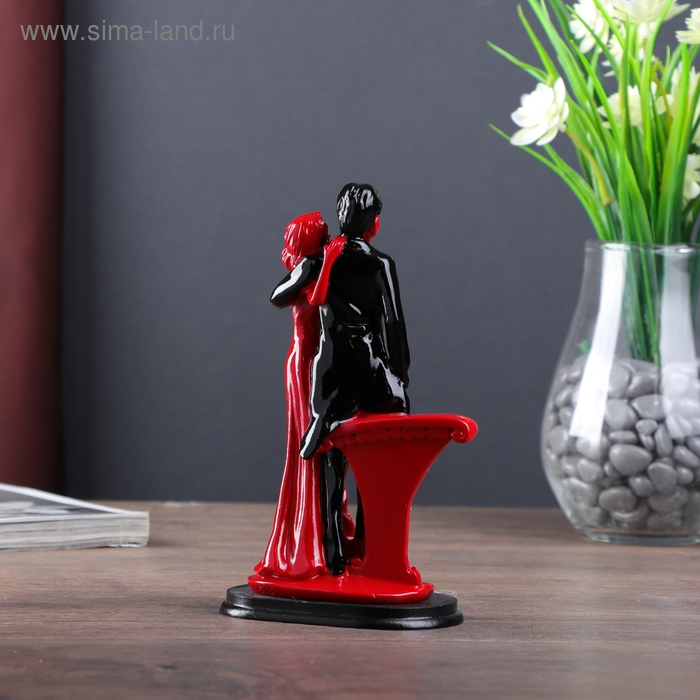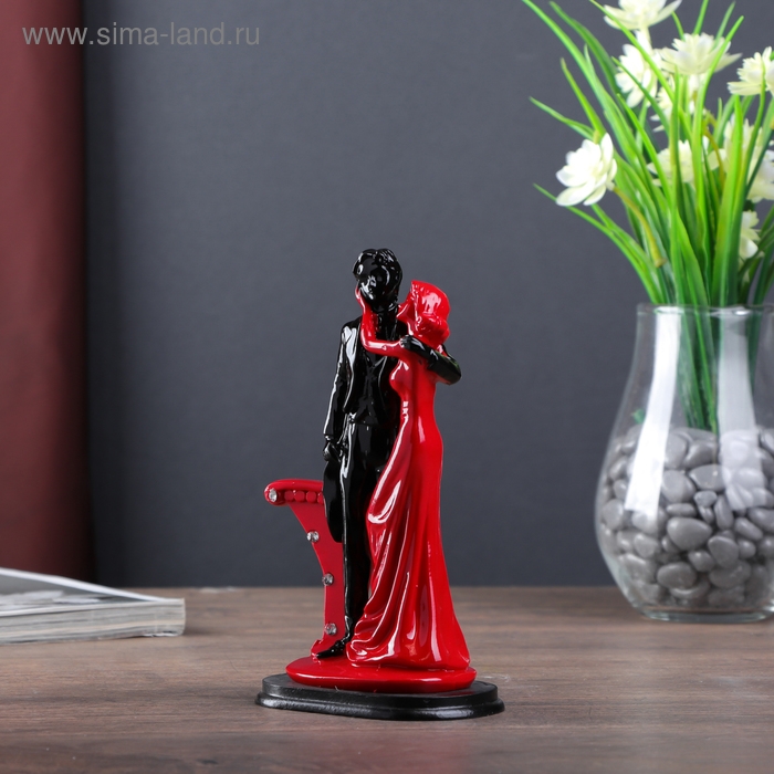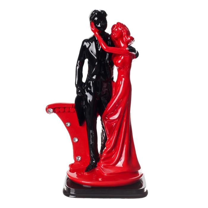 Сувенир полистоун "Пара влюблённых у колонны со стразами" красно-чёрный 17х9х5,5 см