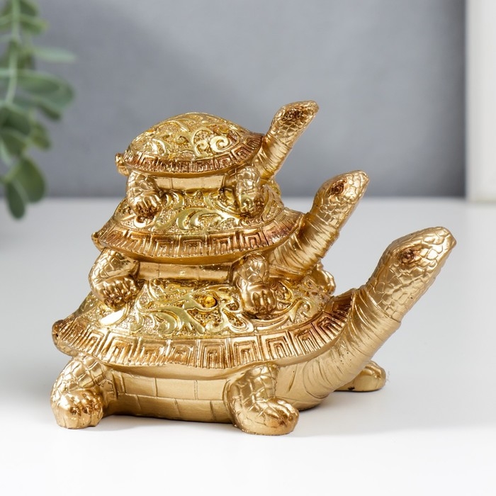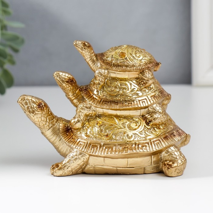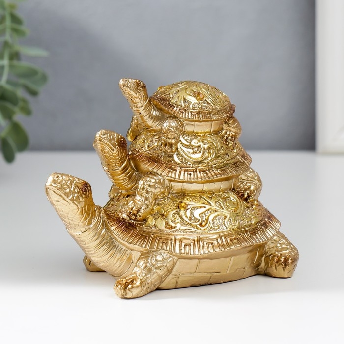 Сувенир полистоун "Пирамида из черепах" золото 11,5х9.5х14.5 см