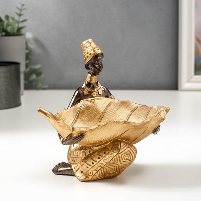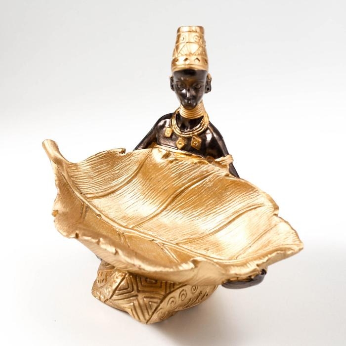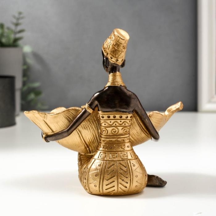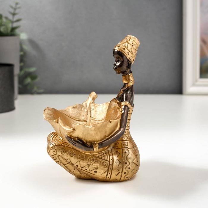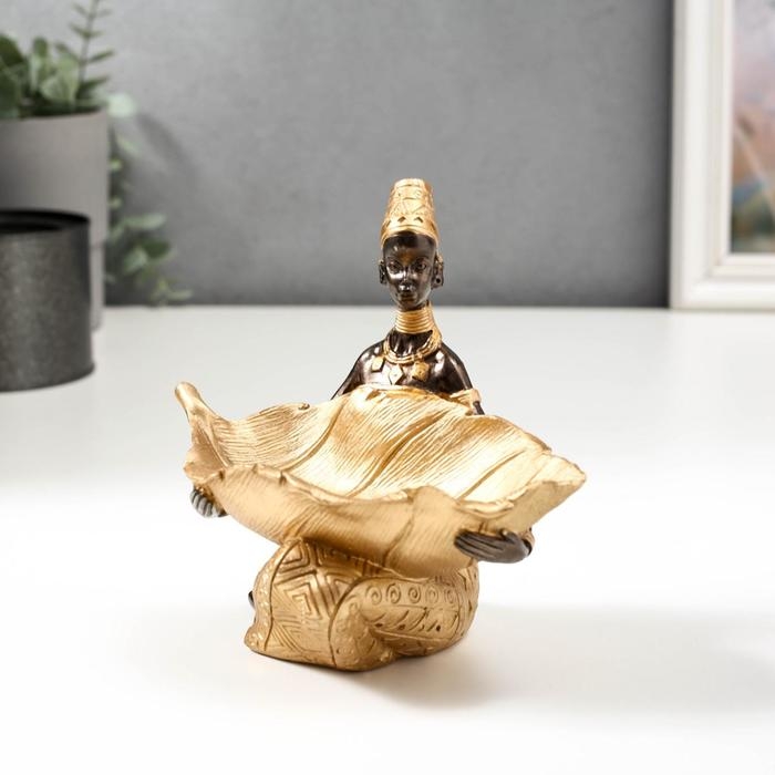Сувенир полистоун подставка "Африканка с золотым листом" 14х14,8х9,5 см