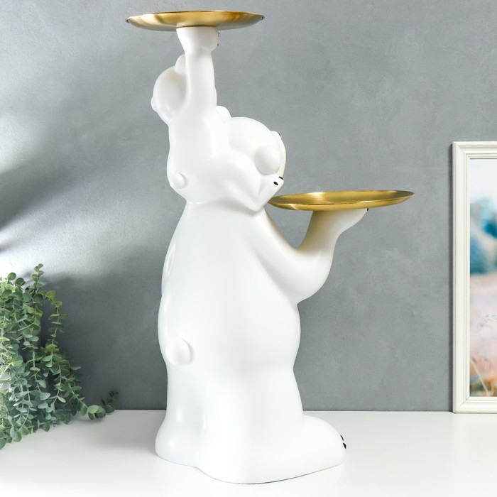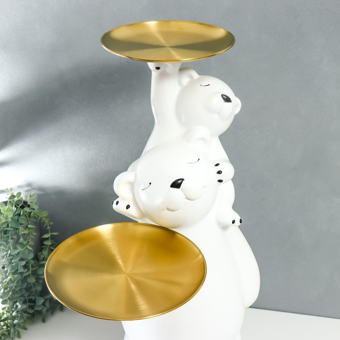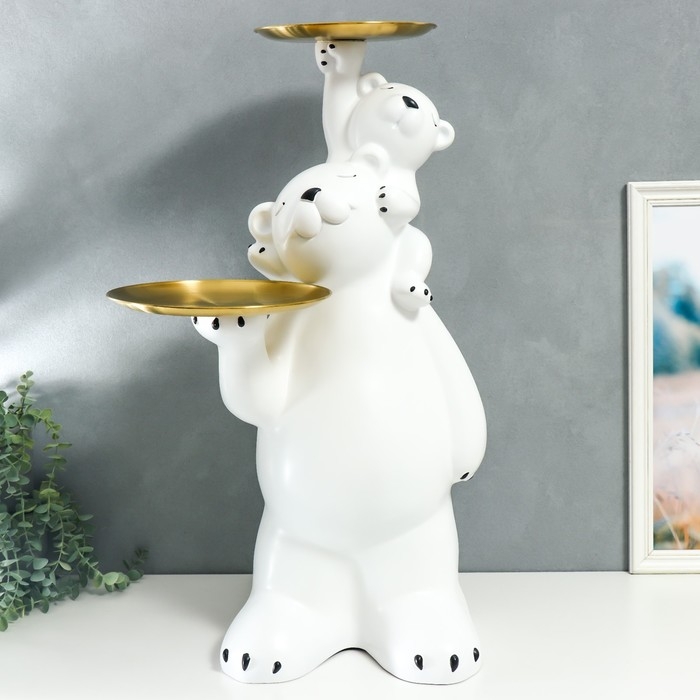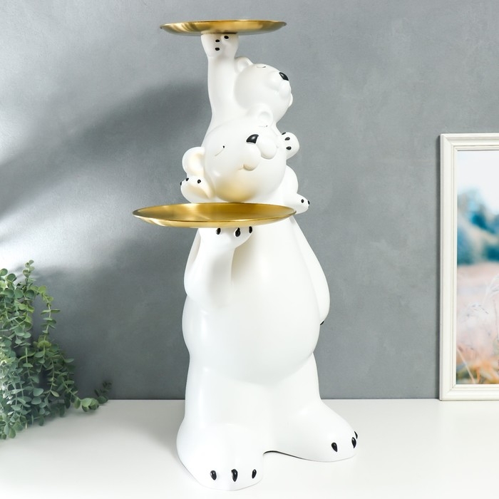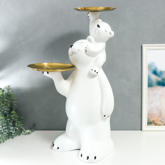 Сувенир полистоун подставка "Белый мишка с медвежонком на плечах" 76х32х32 см