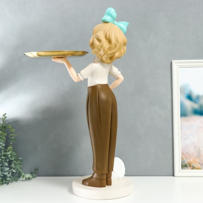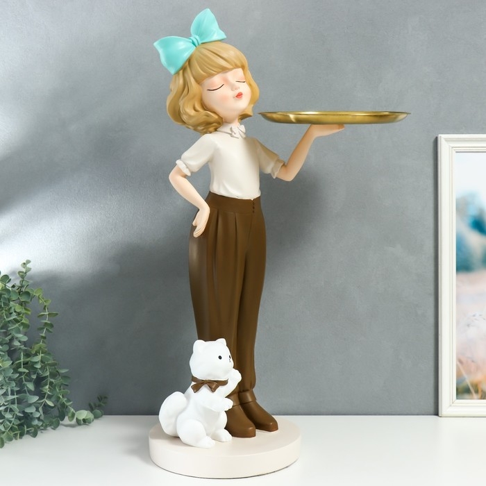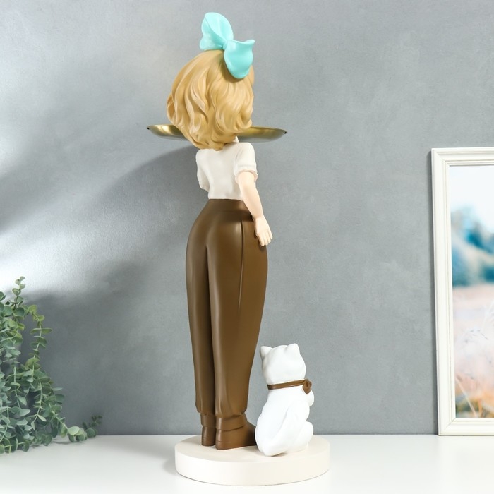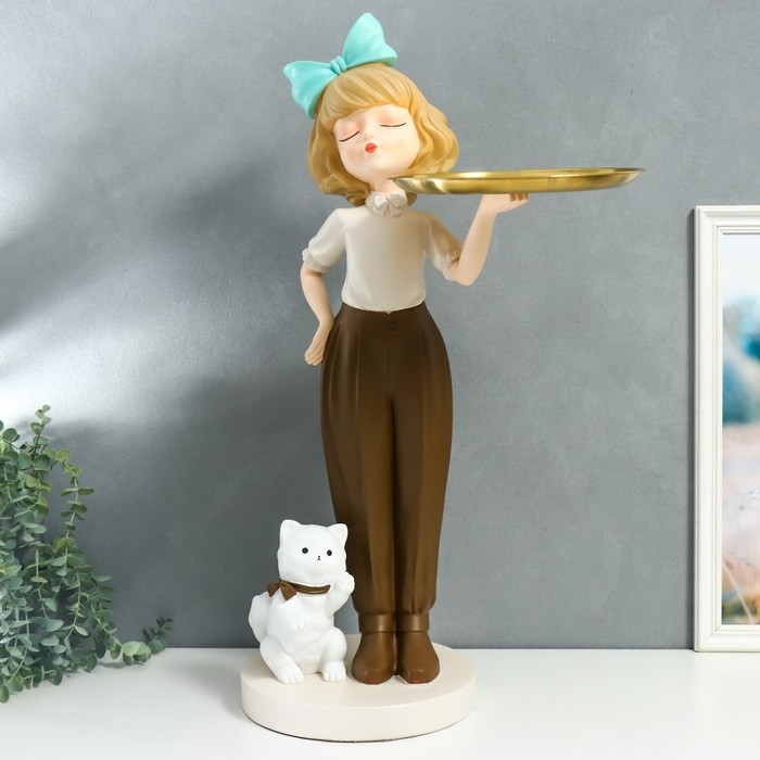 Сувенир полистоун подставка "Девочка с голубым бантом и кошечкой" d=26 см 76х27х35 см