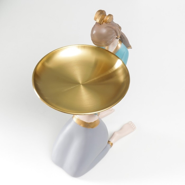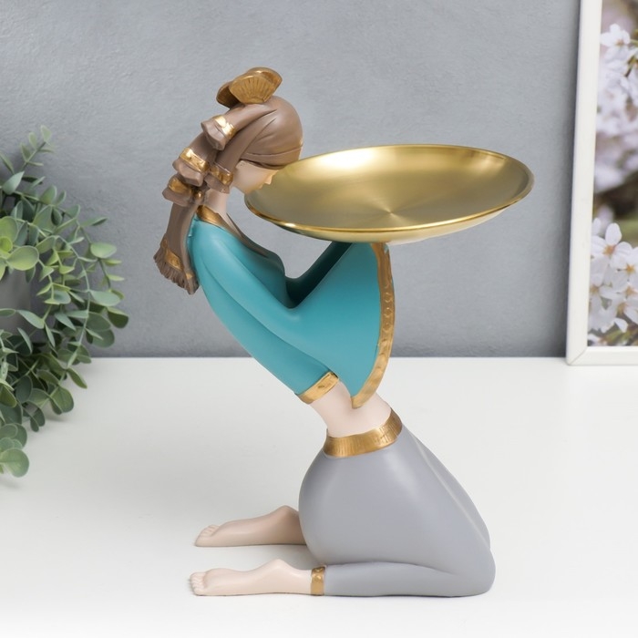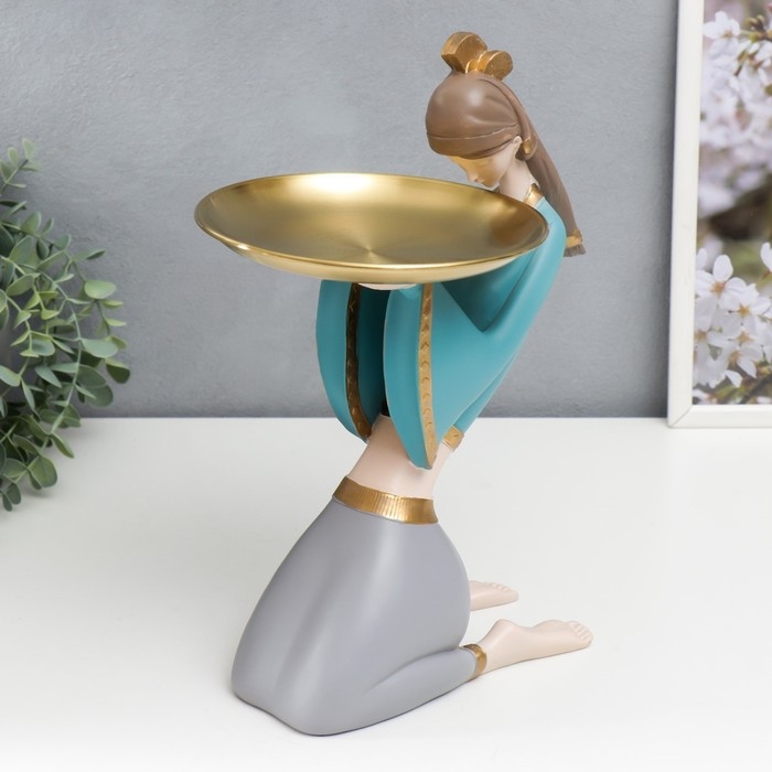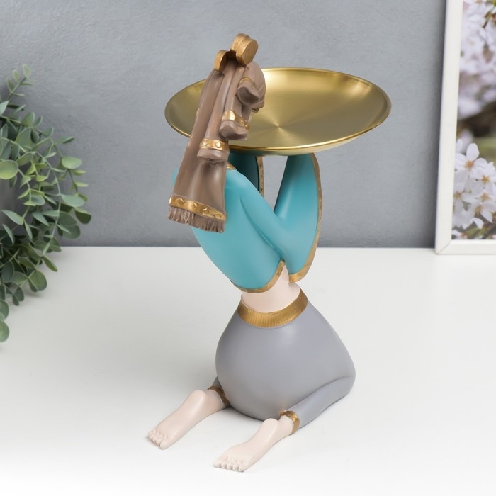 Сувенир полистоун подставка "Девушка в африканском наряде" бежево-голубой 35х12х23 см