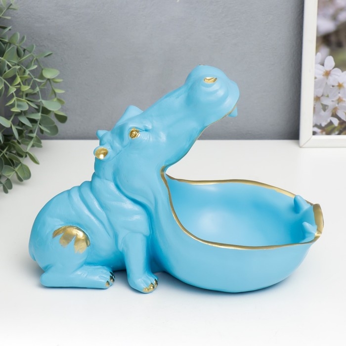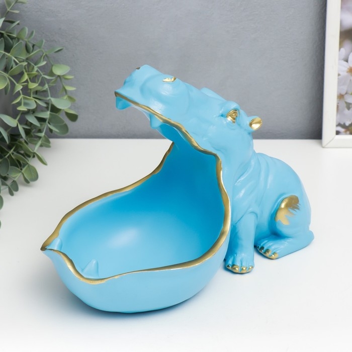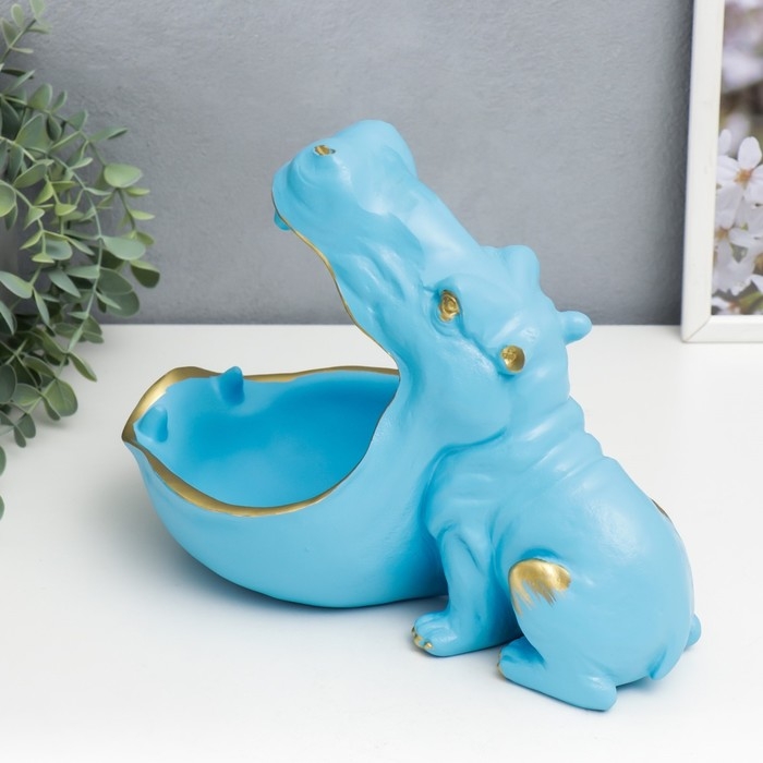 Сувенир полистоун подставка "Голубой бегемот" 22х16,5х30 см