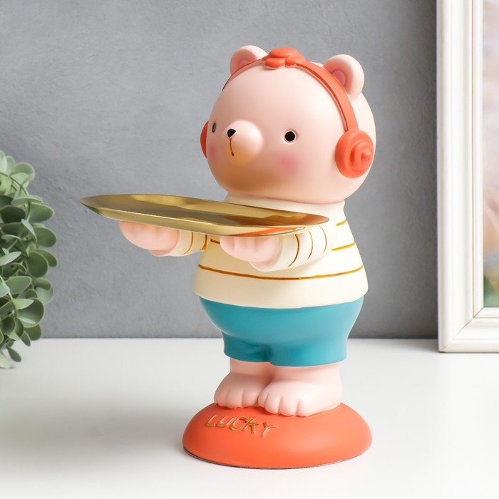 Сувенир полистоун подставка "Медвежонок в наушниках" 23х18х27 см