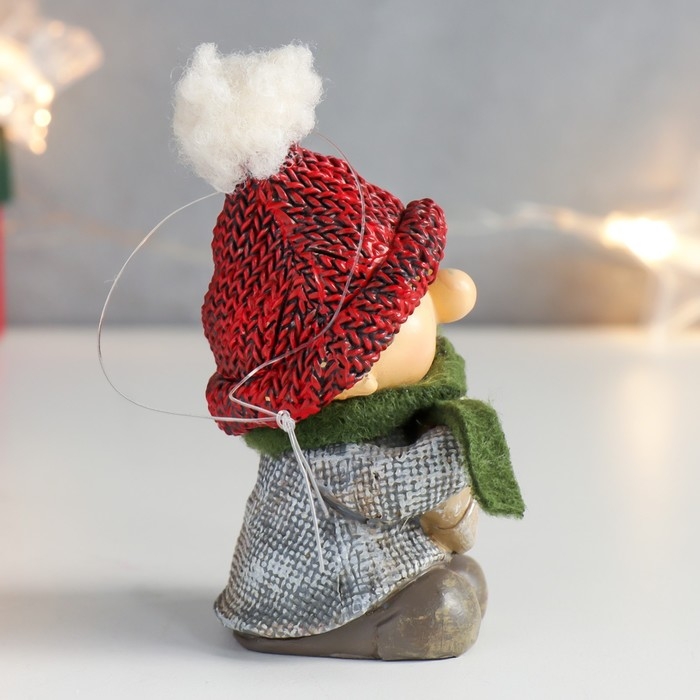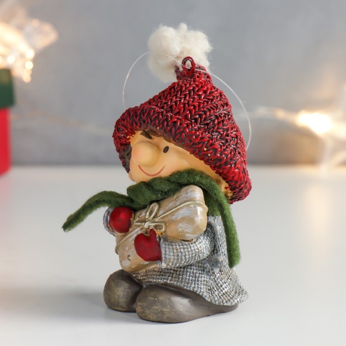 Сувенир полистоун подвеска "Мальчик в красной шапке с подарком" 5,5х5х9 см