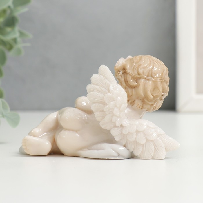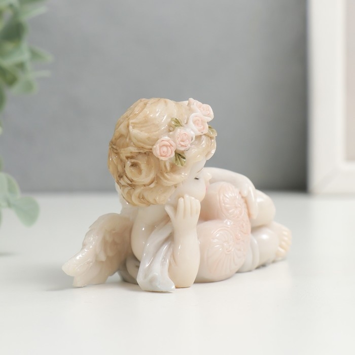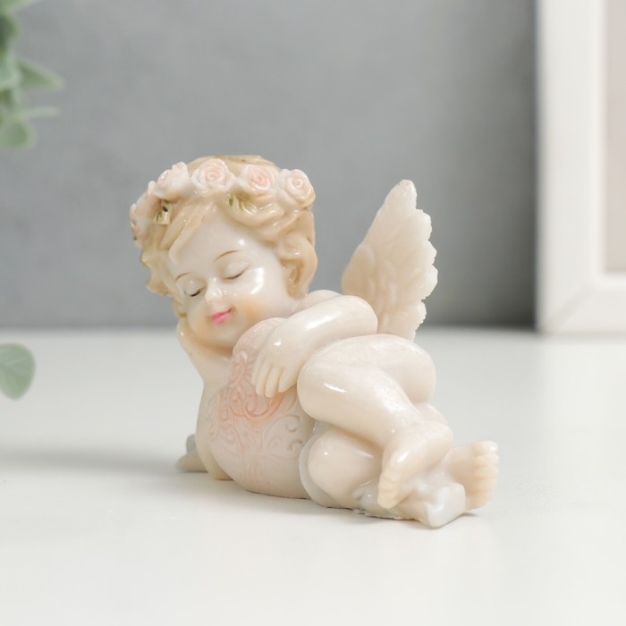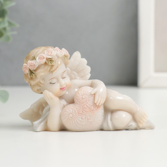 Сувенир полистоун "Пухлый спящий ангел в цветочном венке, с ажурным сердцем" лак 5х4,5х9 см 748594