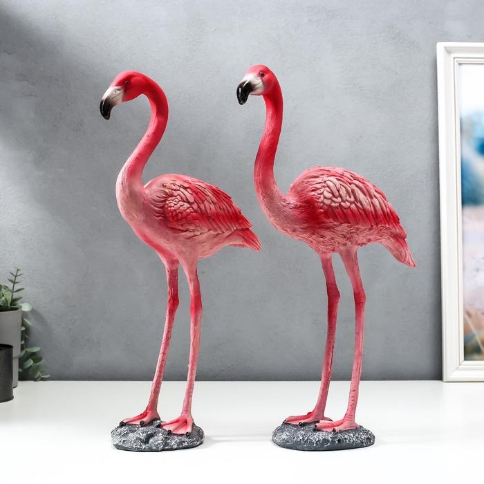 Сувенир полистоун "Розовый фламинго на камне" МИКС 45,5х22х10 см