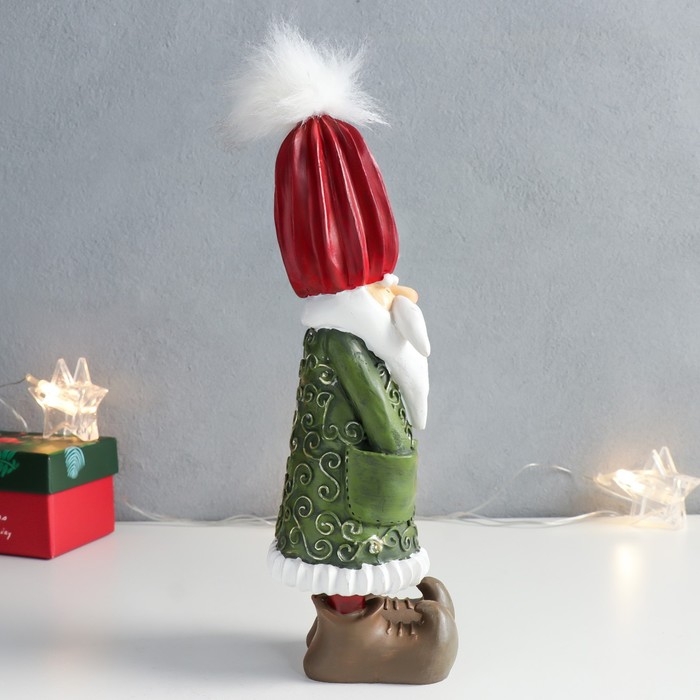 Сувенир полистоун "Санта - факир в зелёной шубке" 7х8х24 см