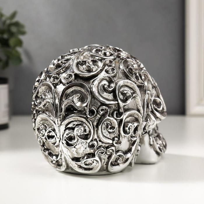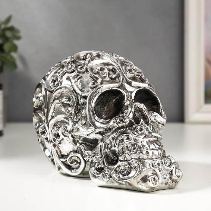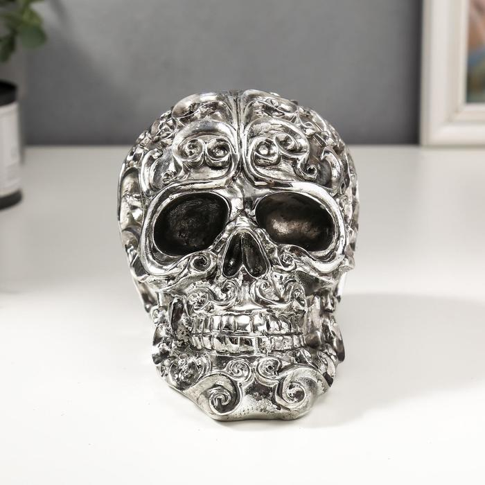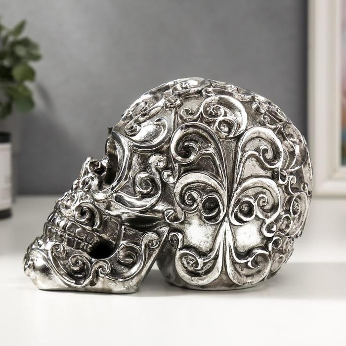 Сувенир полистоун "Серебряный череп с узорами" 12х16х10 см