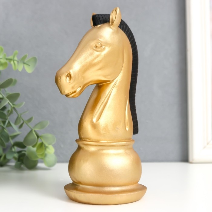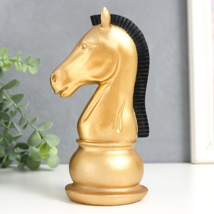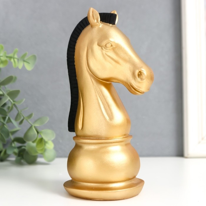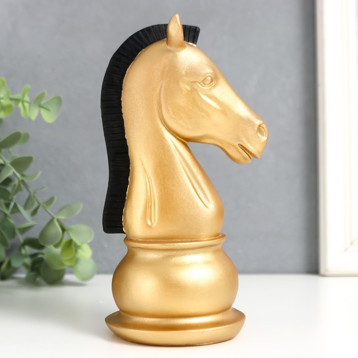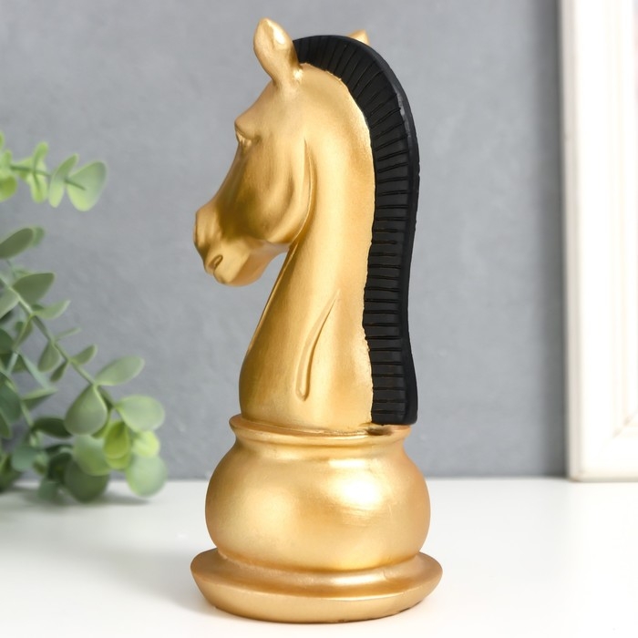Сувенир полистоун "Шахматная фигура. Конь" золотой с чёрной гривой 19,5х10х8 см