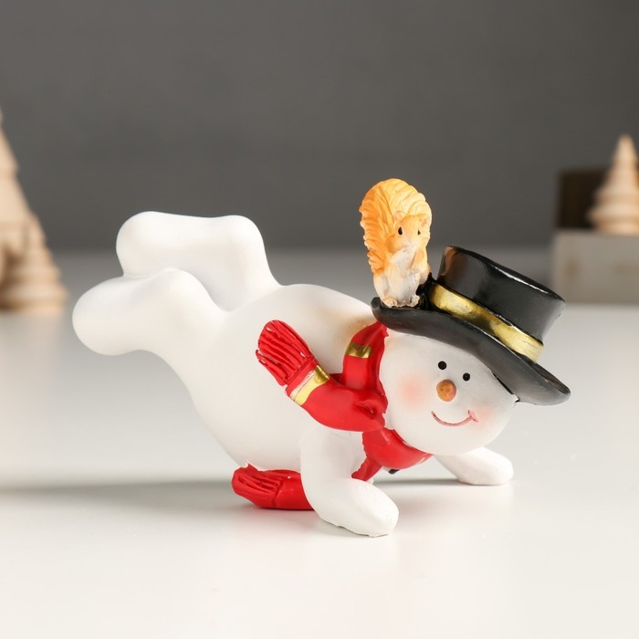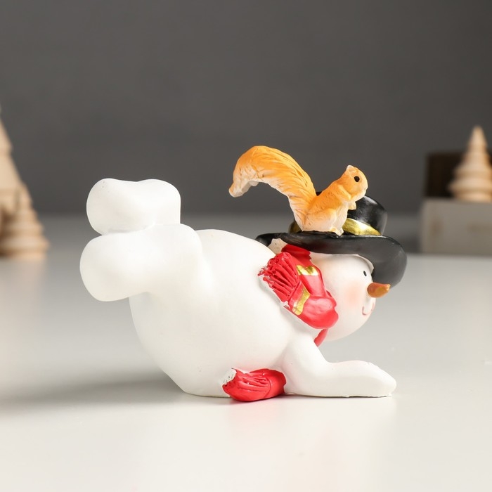Сувенир полистоун "Снеговичок в цилиндре и шарфе, с белочкой" МИКС 12х8х см