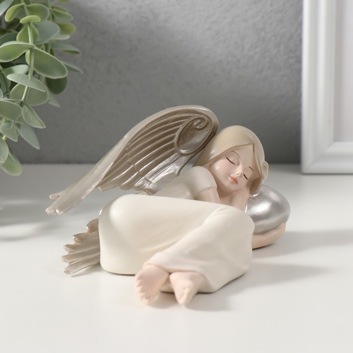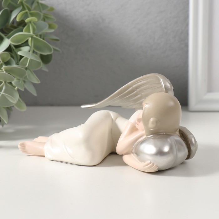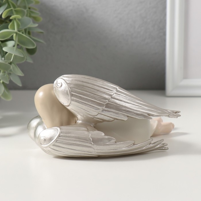 Сувенир полистоун "Спящий ангелочек с серебряными крыльями" 14х10х7 см