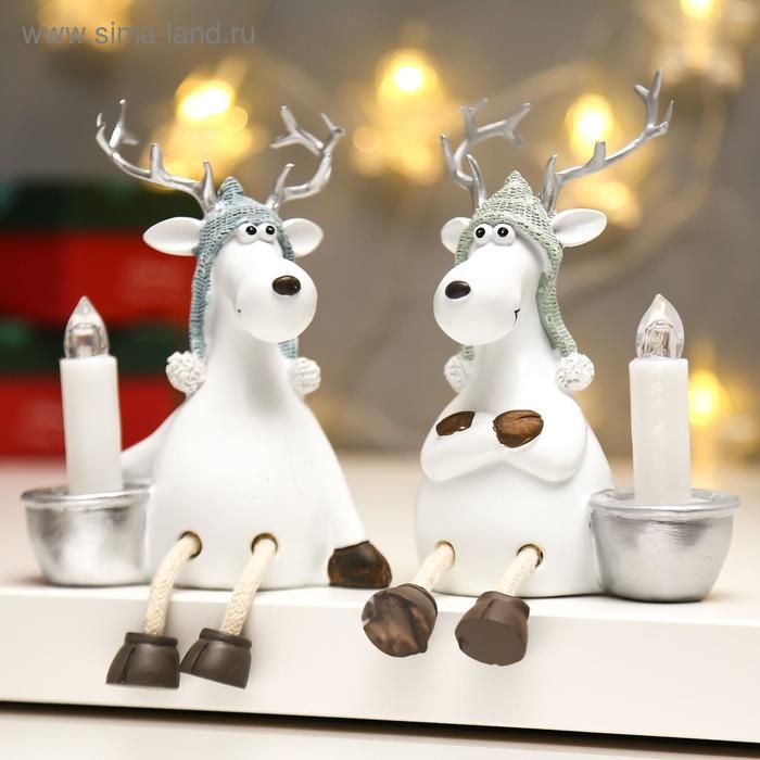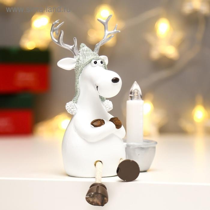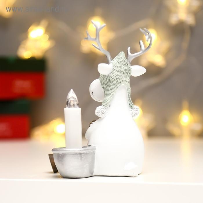 Сувенир полистоун свет "Белый олешка в вязаной шапке со свечкой" МИКС 11,5х8х10,5 см
