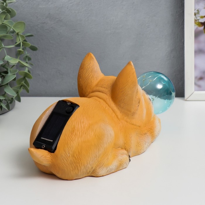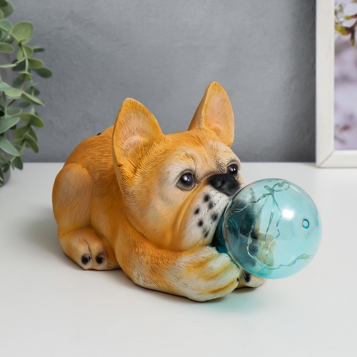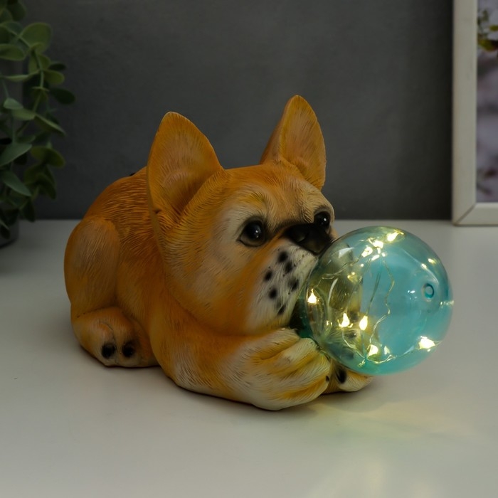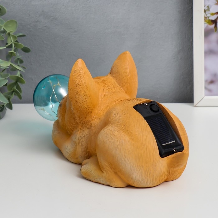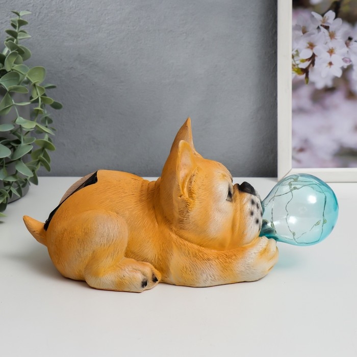 Сувенир полистоун свет "Бульдог и мыльный пузырь" от солнечной батареи 12х11,5х26 см