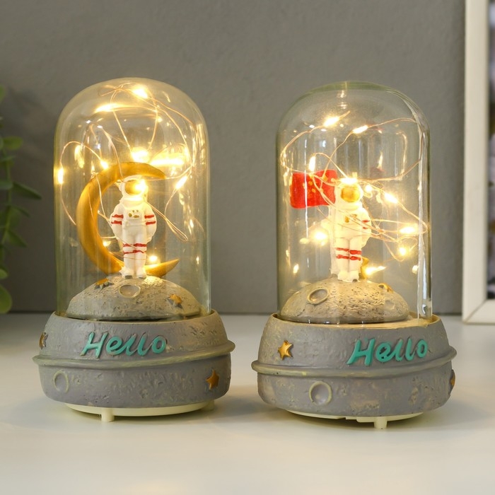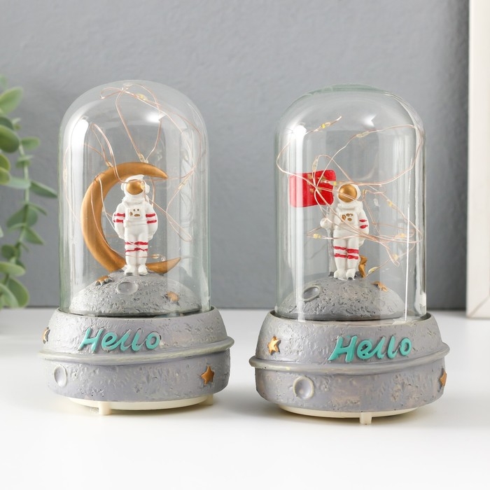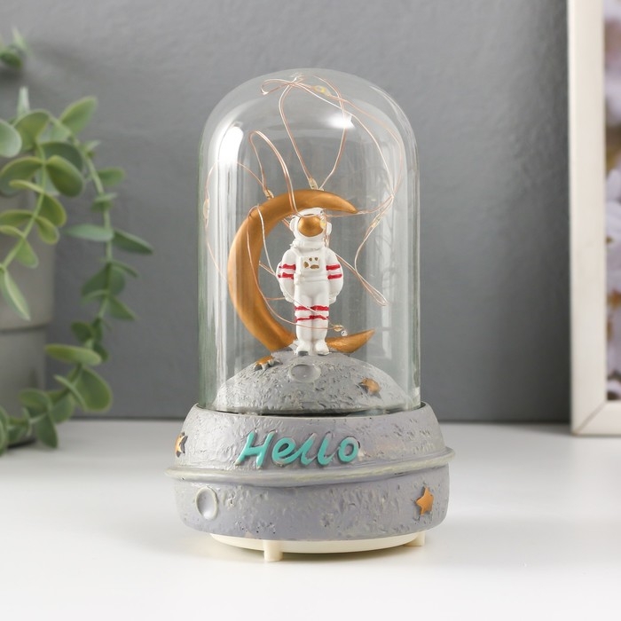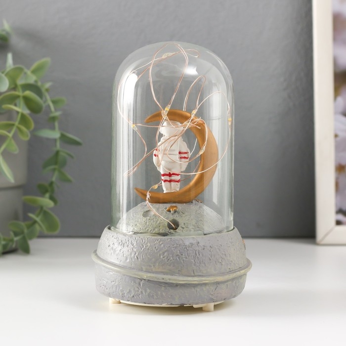 Сувенир полистоун свет "Космонавт на луне в колбе" звук 2хААА 9х9х14,5 см МИКС