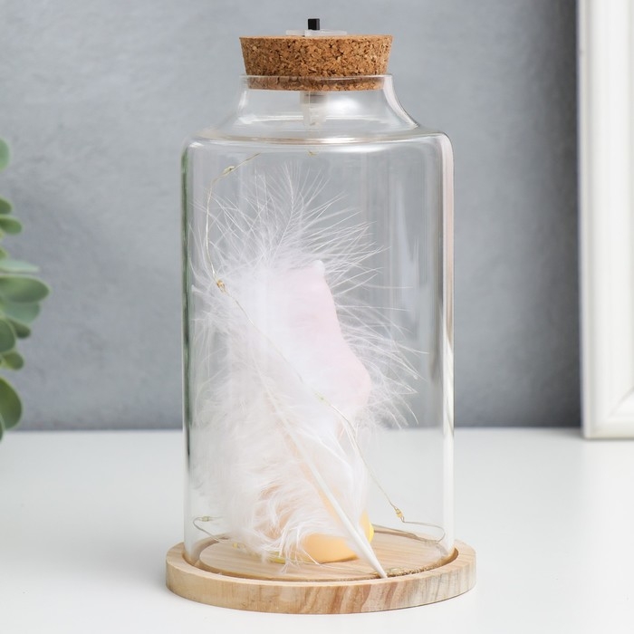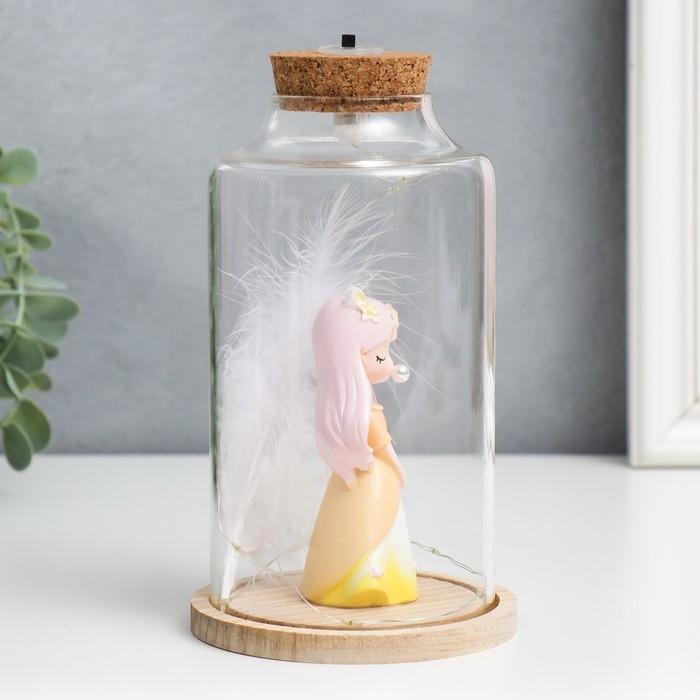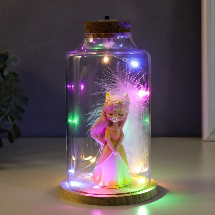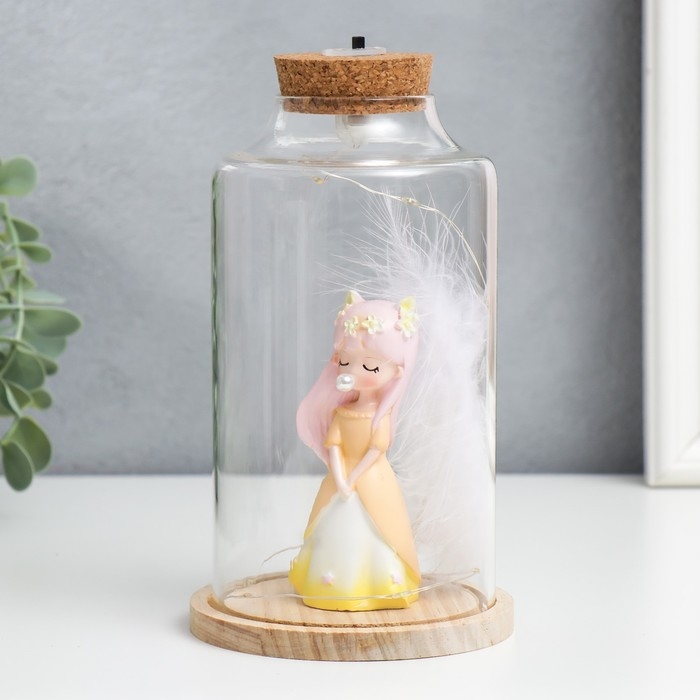 Сувенир полистоун световой "Девочка с розовыми волосами, ушками и пером" 10х10х17,5 см