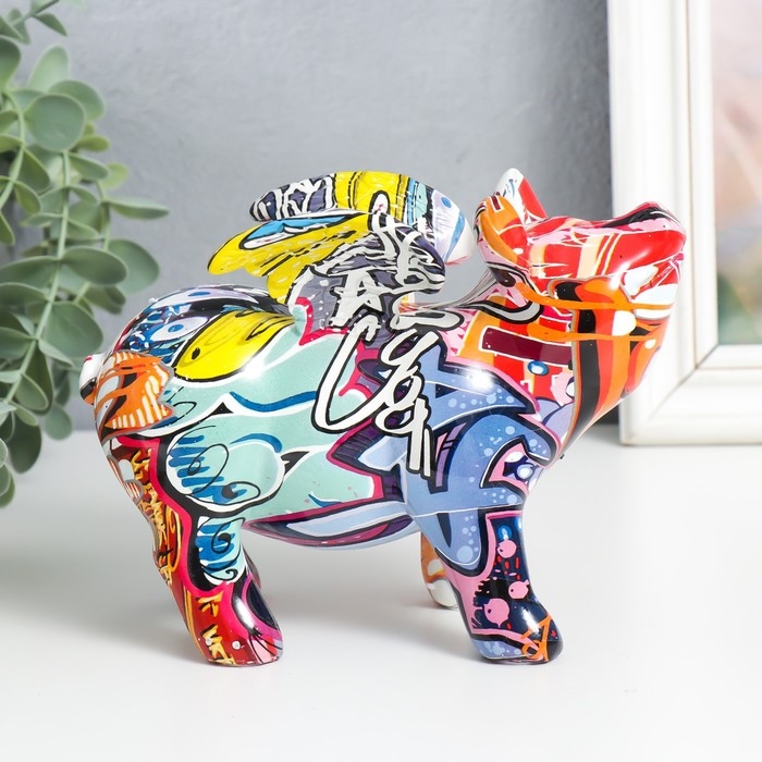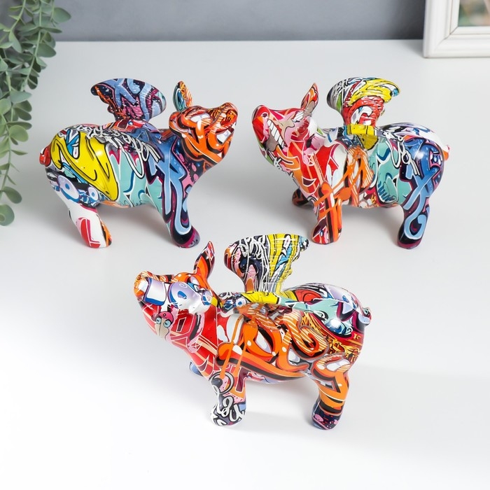 Сувенир полистоун "Свинка с крыльями" граффити МИКС 8,5х18х13 см