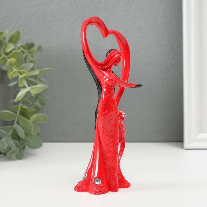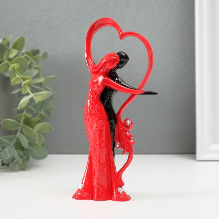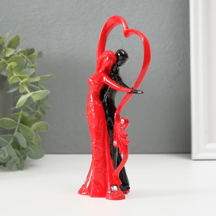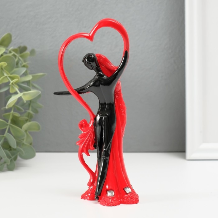 Сувенир полистоун "Танцующая пара у сердца со стразами" красно-чёрный 17х7х4,7 см