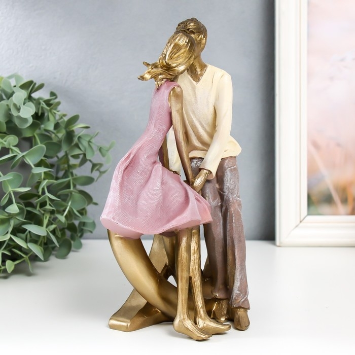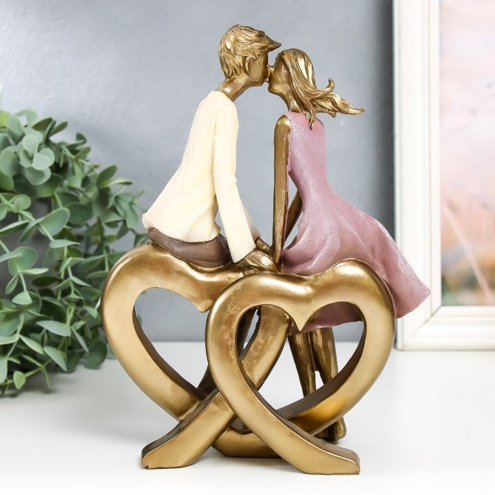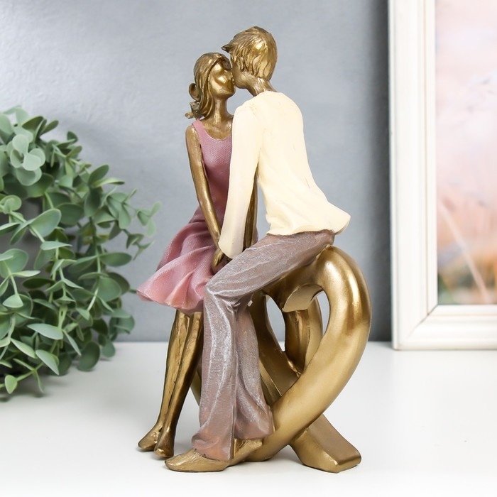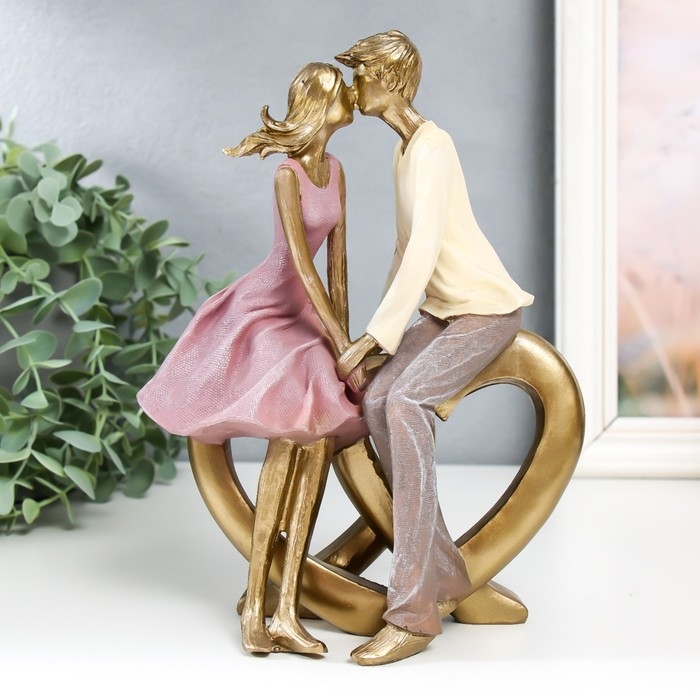 Сувенир полистоун "Влюблённая пара - поцелуй на сердце" 9х17х22,5 см