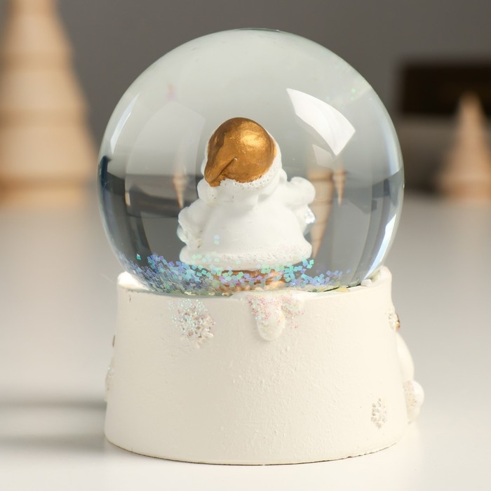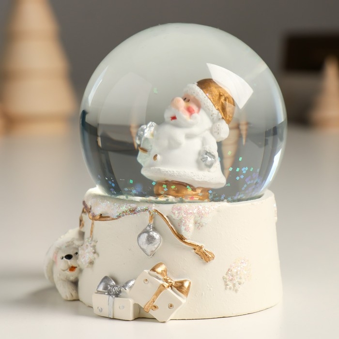 Сувенир полистоун водяной шар "Дед Мороз с подарком" белый с золотом 7х8х9 см