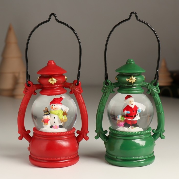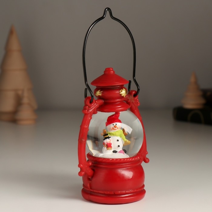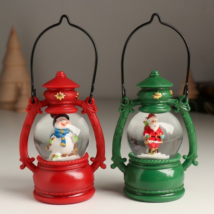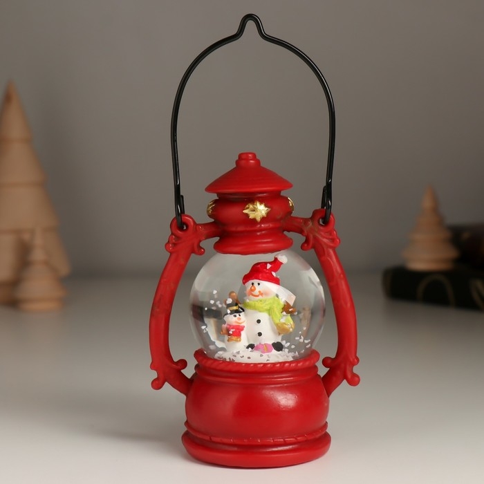Сувенир полистоун водяной шар "Дед Мороз/Снеговик в фонарике" МИКС 7х5х10 см