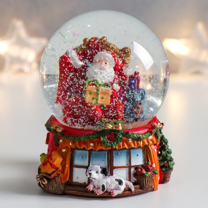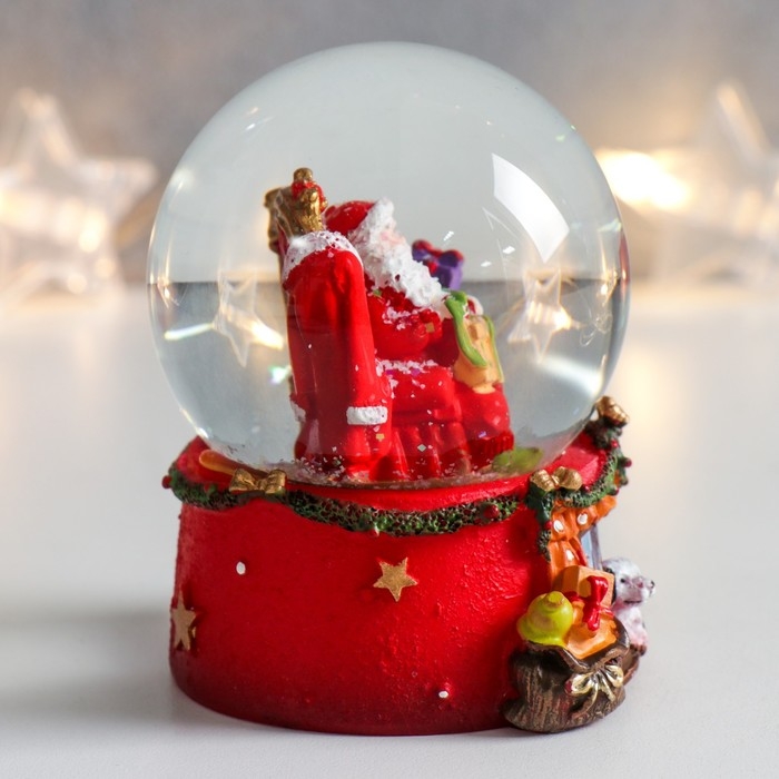 Сувенир полистоун водяной шар "Дед Мороз в кресле с подарками" 7х6,7х8,8 см