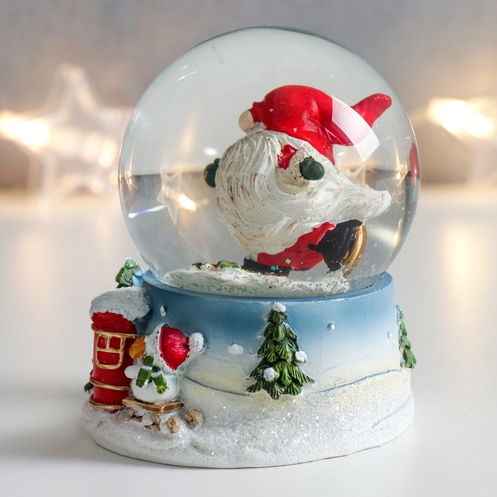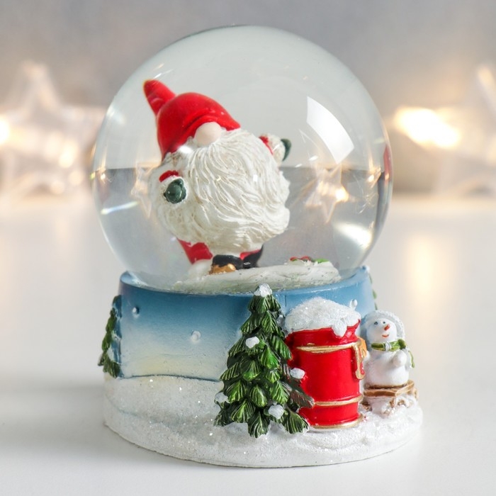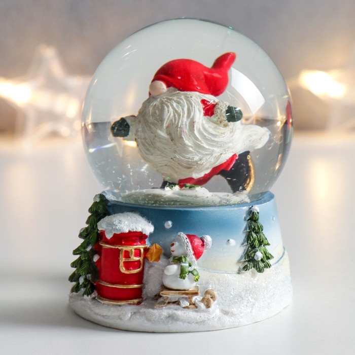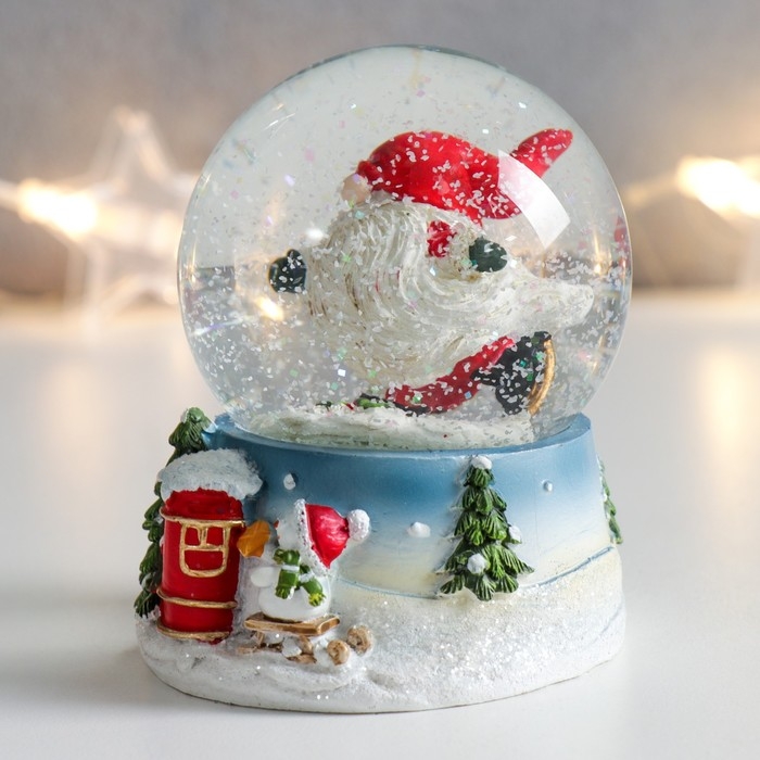 Сувенир полистоун водяной шар "Дед Морозик на лыжах" 7х6,7х8,8х см