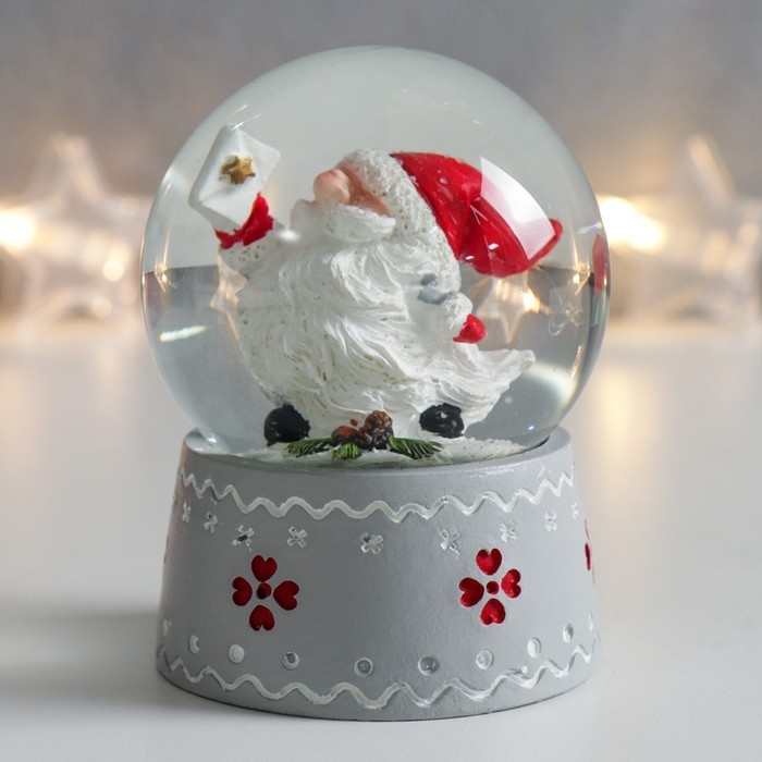 Сувенир полистоун водяной шар "Дед Морозик с длинной бородой" 6,5х6,5х8,5 см