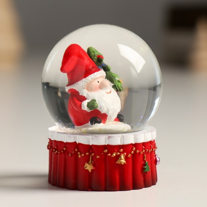 Сувенир полистоун водяной шар "Дедушка Мороз с ёлочкой" 4,5х4,5х6,5 см