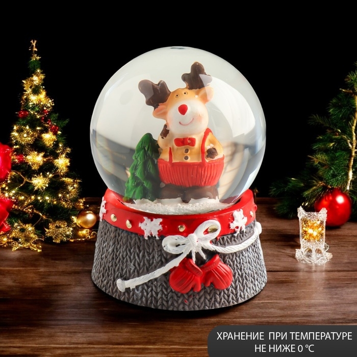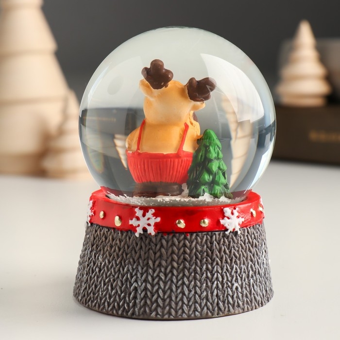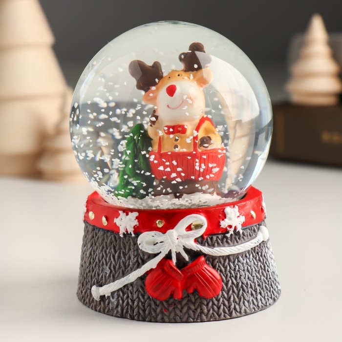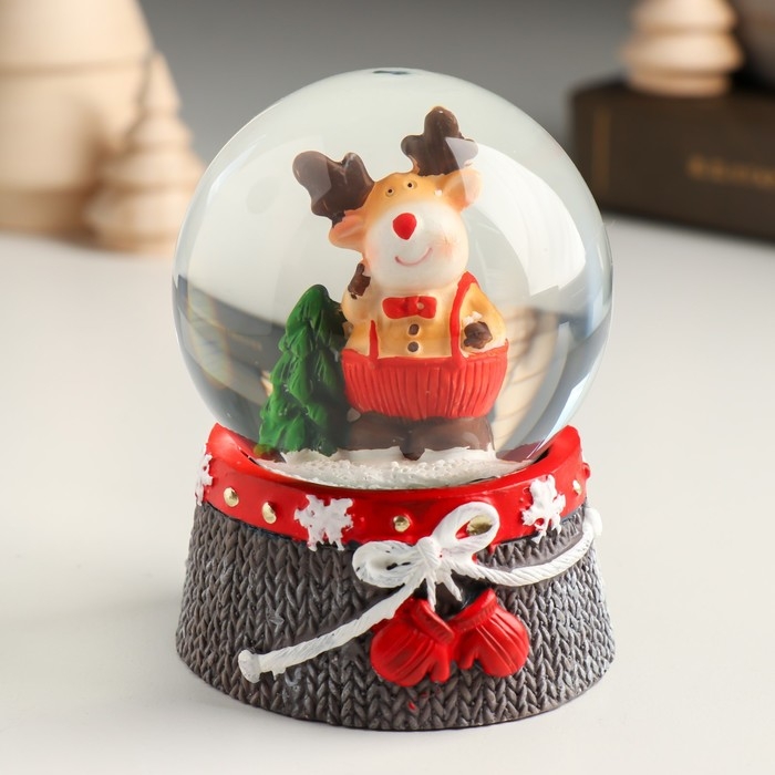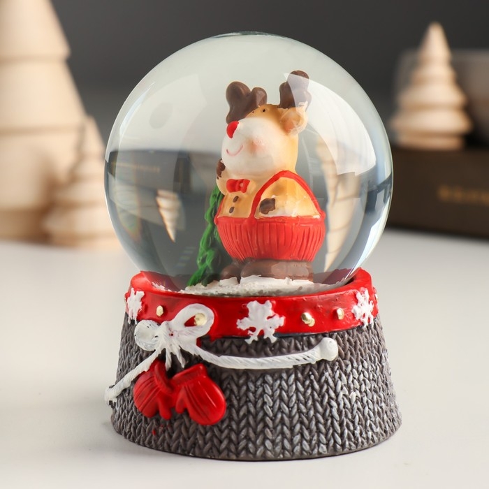 Сувенир полистоун водяной шар "Лосик в красном комбинезоне" 6,8х6,8х8,8 см